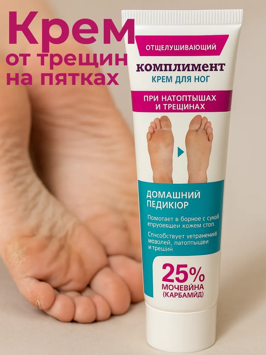 Крем подходит для домашнего педикюра, что позволяет сэкономить время и деньги на посещение салонов. Ваши ножки всегда будут ухоженными и мягкими без лишних усилий!