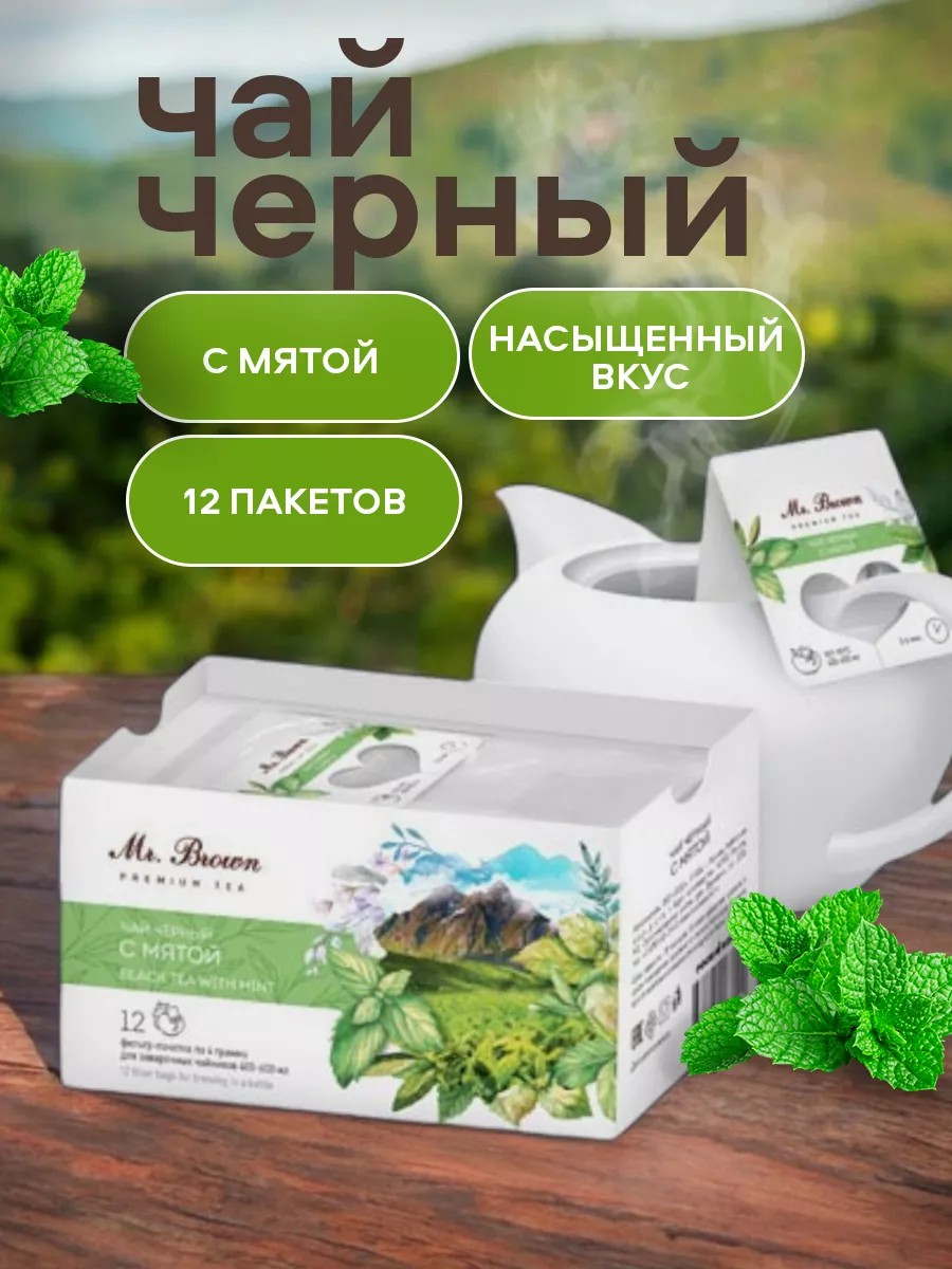 Mr Brown Tea in bags for a black teapot with mint 12pcs