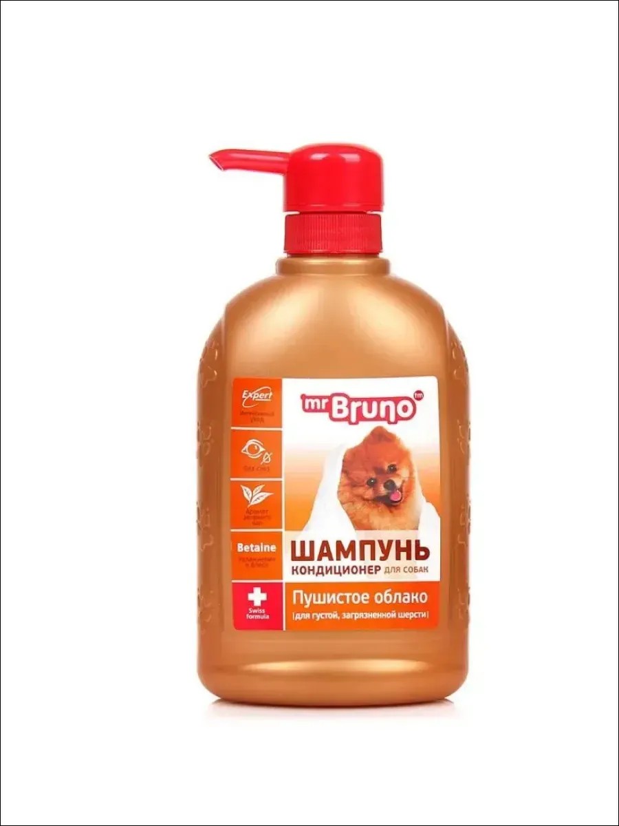 Шампунь-кондиционер Mr.Bruno «Пушистое облако» для собак с густой шерстью, рекомендуется иШампунь-кондиционер для густой и сильно загрязнённой шерсти.