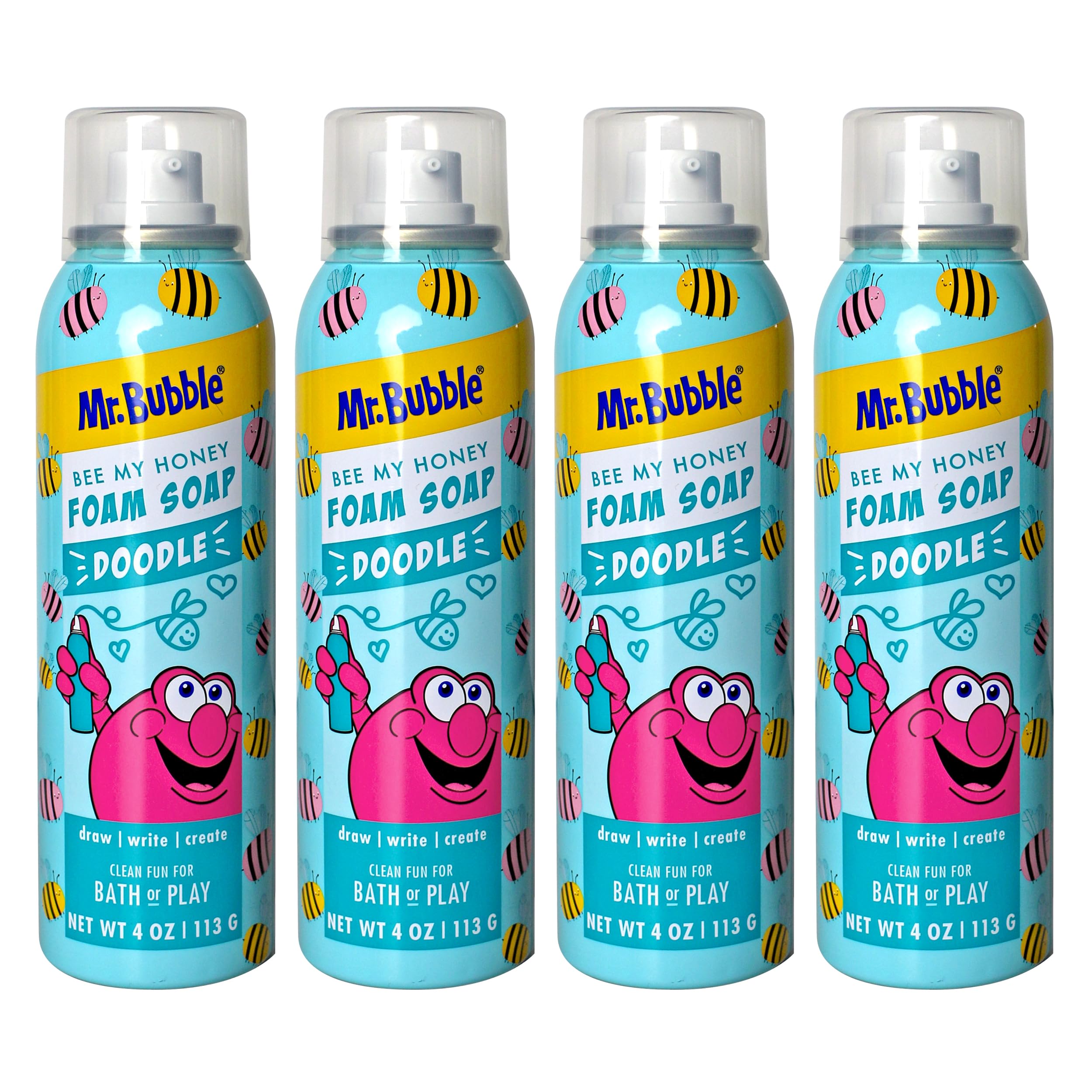 Mr. Bubble Limited Edition Foam Soap Creativity Bath Soap Cleans & Moisturizes Bee My Honey (Blueberry Honey Scent) 4 oz Pack of 4