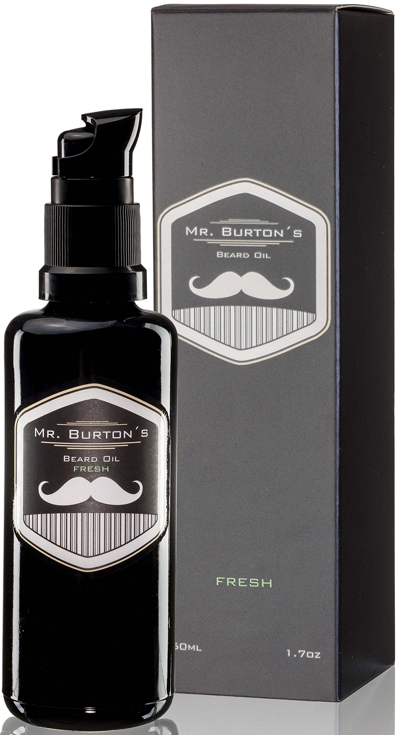 Mr Burtons Beard Oil is a natural product made with five high-quality oils: In addition to precious argan oil, which makes the beard smooth and soft, nourishes the skin, and prevents tightness, there are jojoba and almond oils, apricot kernel oil to reduce itching, especially during the growth phase, and grapeseed oil to support wound healing, even after shaving. Mr Burtons Beard Oil Fresh is subtly scented with essential oils: Don't rely on a refreshing mint and citrus composition. Mr Burtons Fresh's fragrance is ideal for combining with our Beard Balm Fresh, as the ingredients are also coordinated like a cream. For daily use, rub a small amount in your hands. The pump helps you dispense the correct amount. Beard hair should look neat and not shiny like a speck of black. Your daughter has a 3-day beard, but not prickly kisses with a rash? Give her a high-quality beard oil. Looking for a gift? Mr. Burtons beard oil comes in a light-protected black bottle, packaged in a sturdy cardboard box with a modern 3D print. Battery-operated knot included. Application: Every day, pump a small amount into your hand, pour into your beard, and massage into the skin underneath. Contents: 50 ml