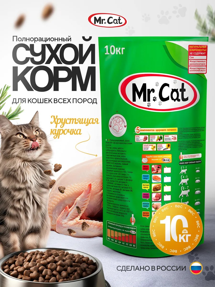 | Полное наименование товара | Полнорационный сухой корм Mr. Cat для взрослых кошек и котят |