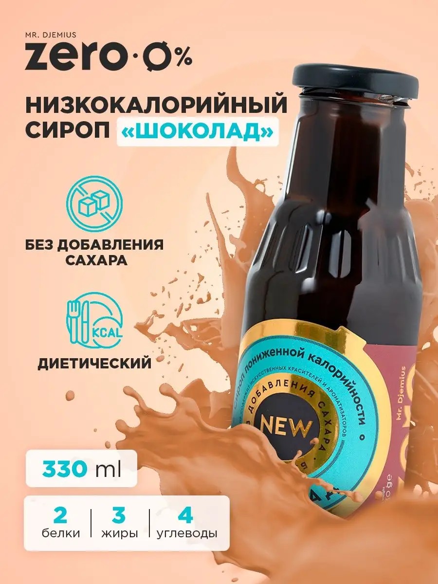 Вкусный и питательный низкокалорийный сироп 330 мл с насыщенным вкусом натурального шоколада. Разработка популярного производителя натуральных диетических продуктов Mr.Djemius ZERO. В составе не применяется сахар и ГМО. Лучшая альтернатива традиционным сиропам, которые содержат в составе большое количество калорий. Не повредит фигуре или диете.Продукт пользуется популярностью среди профессиональных спортсменов, а также приверженцев здорового питания. Помогает разнообразить традиционный рацион питания. Низкокалорийный сироп сочетается с различными десертами, кашами и выпечкой. Mr.Djemius ZERO низкокалорийный сироп 330 мл шоколад улучшает вкусовые характеристики продуктов питания.Сбалансированное содержание по БЖУ. Помогает быстрее утолить голод и восстановить силы. При необходимости добавляйте сироп в разнообразные напитки и коктейли. Количество сиропа определяется индивидуально в зависимости от вкусовых предпочтений.