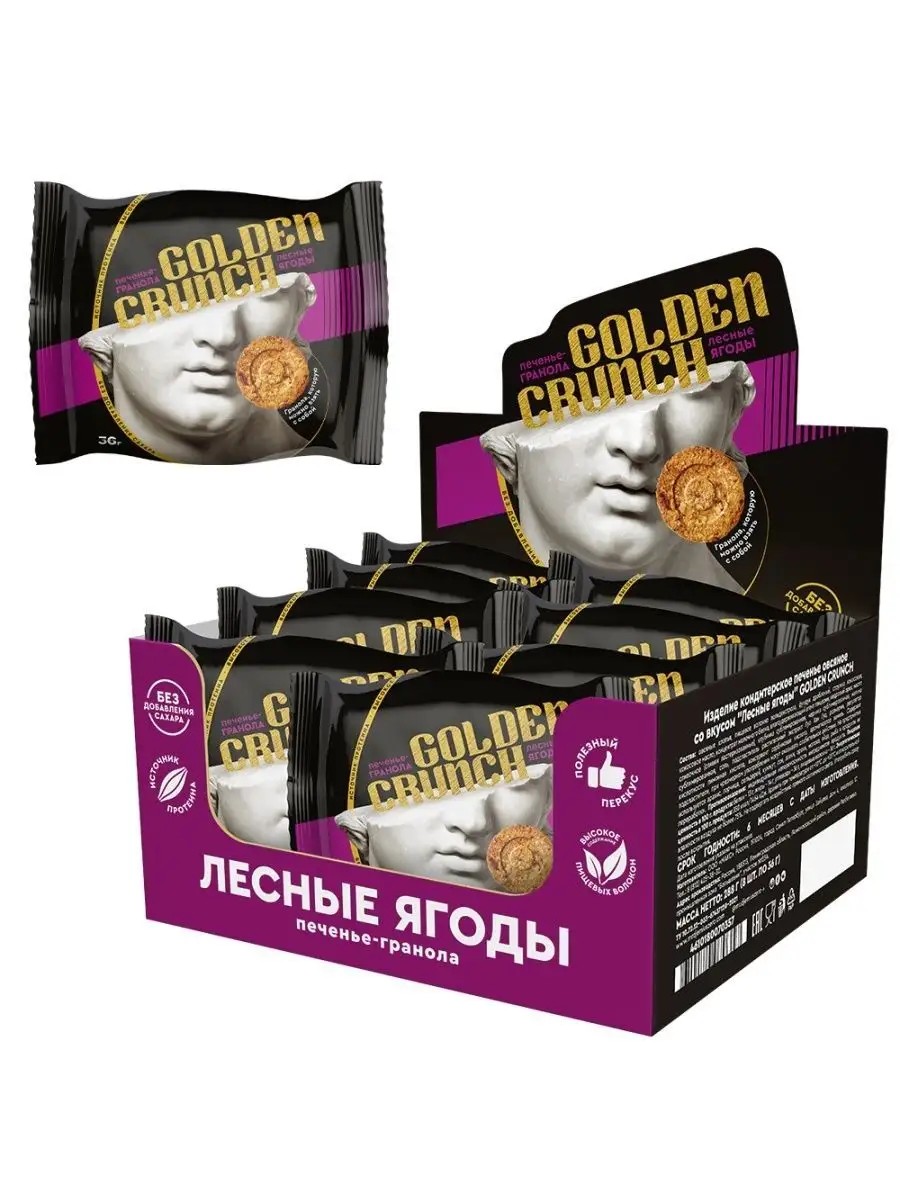 Печенье-мюсли овсяное Golden Crunch вкус Лесные ягоды - это хрустящее печенье без сахара овсяное с добавлением настоящих ягод и орехов.