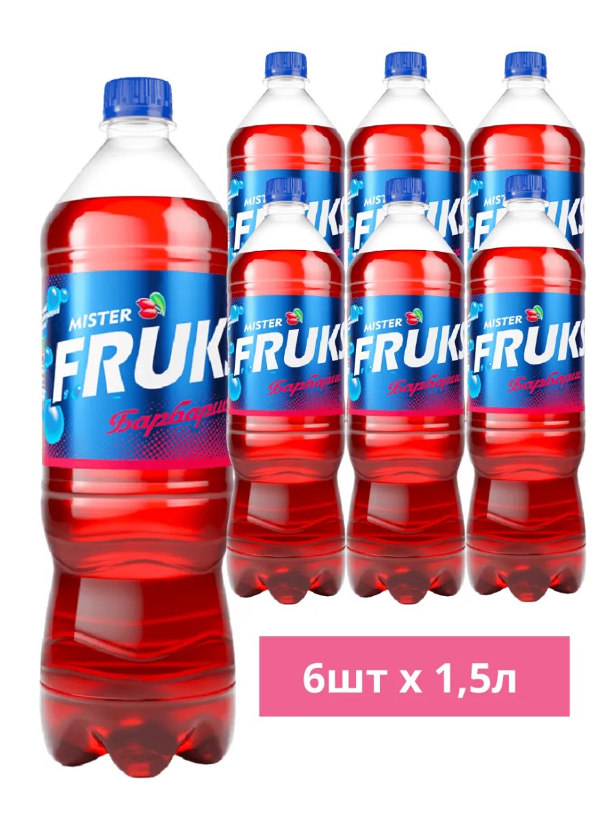 MISTER FRUKS – безалкогольный среднегазированный напиток со вкусом любимого всеми с детства барбариса. Эта сладкая газированная вода с соком поможет утолить жажду, взбодриться и поднять настроение, а разнообразие вкусов удивит даже самых взыскательных любителей газировки.