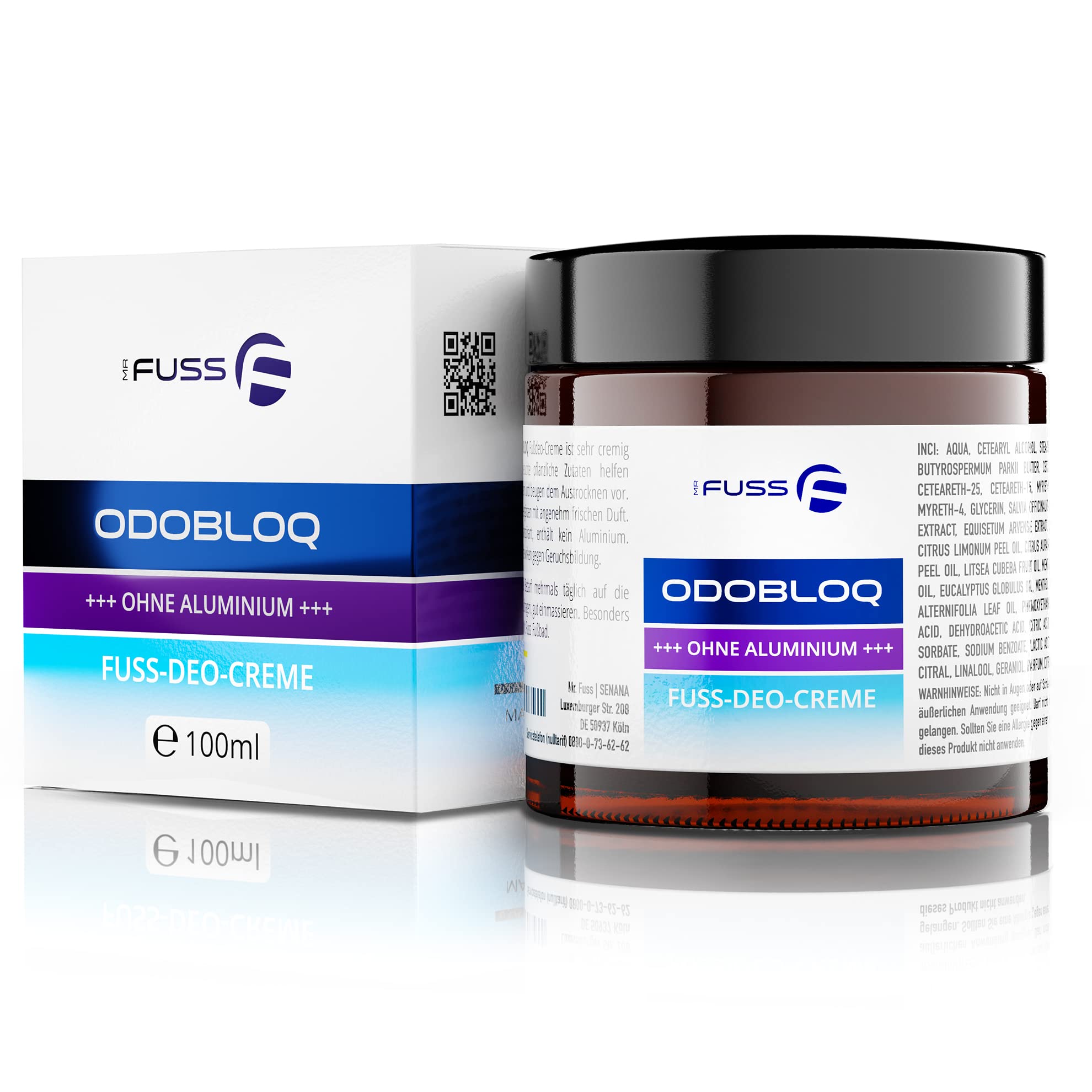 Mr. Fuss ODOBLOQ Déodorant crème contre les pieds transpirants et les fortes odeurs – Sans aluminium – 100 ml – Crème pour hommes et femmes