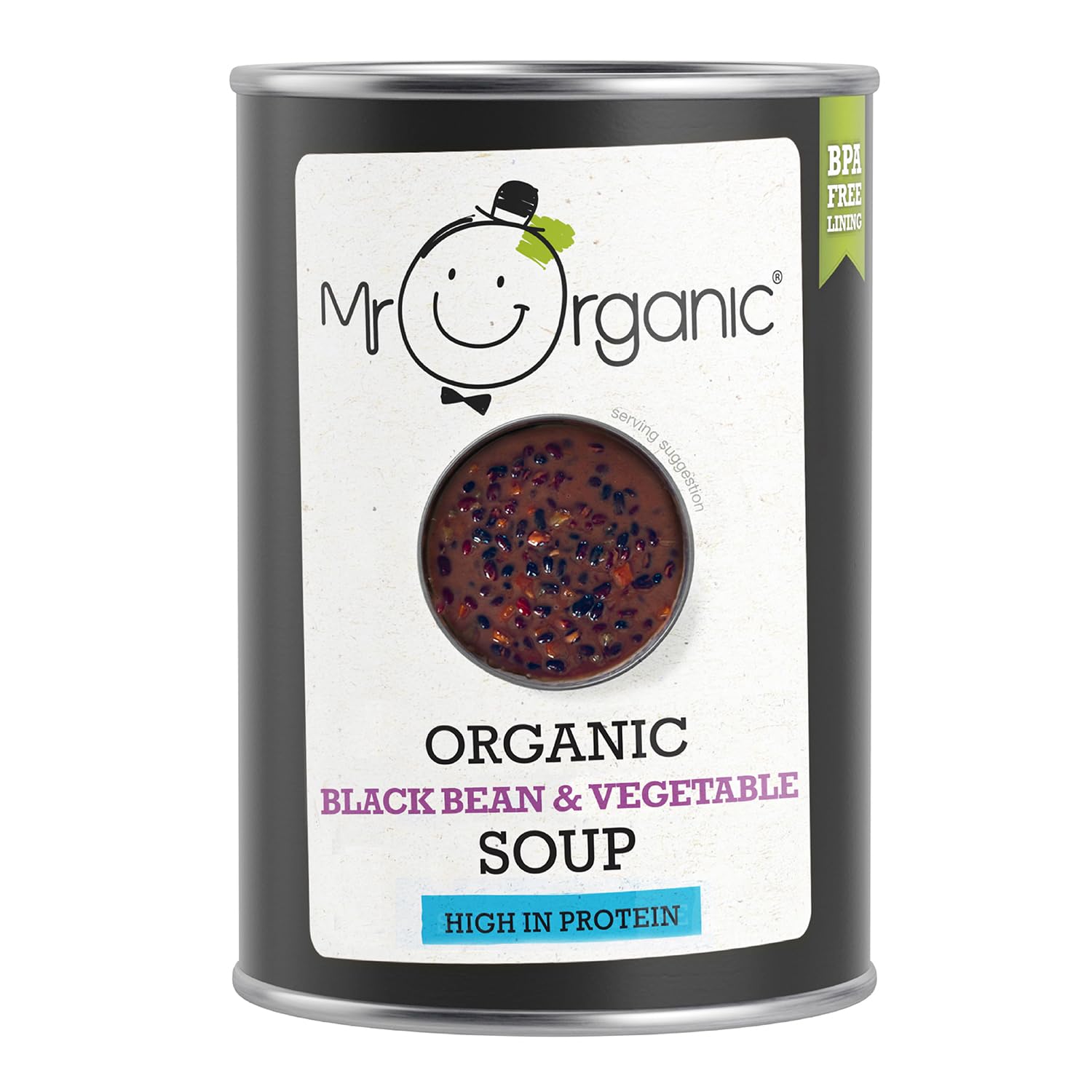 Indulge in the wholesome goodness of Mr Organic Black Bean Vegetable Soup, a delicious soup that's also packed with protein. This 400g can contains an organic recipe that captures the essence of nature's bounty, delivering comfort in every spoonful. Made with care and attention to quality, this soup reflects Mr Organic's commitment to providing nutritious and delicious options. Bursting with lovingly cooked black beans and a medley of vegetables, it's a satisfying choice for those seeking a nourishing meal. Embrace the simplicity of an organic recipe with no artificial additives or preservatives. Mr Organic Black Bean Vegetable Soup is a beacon of healthy eating, making it a great addition to your kitchen cupboard for those times when you crave comfort food. Dive into the warming flavors and comforting aroma of this soup. Let Mr Organic bring nature's goodness to your table, delivering a taste that's as satisfying as it is delicious. Discover the pleasure of Mr Organic Black Bean Vegetable Soup today. With its wholesome ingredients and rich flavor, it's the perfect way to embrace the goodness of plants. INGREDIENTS Water, Black Beans (36 ), Celery (5.8 ), Carrots (5.8 ), Potatoes (2 ), Sugar , Sunflower Oil , Sea Salt, Corn Starch , Spices (contains mustard), Sunflower ProteinMr Organic Soupe aux haricots noirs et aux légumes – Riche en protéines – Ingrédients biologiques – À base de plantes – Saine et réconfortante – Boîte de 400 gDESCRIPTION DU PRODUIT DESCRIPTION DU PRODUIT Laissez-vous tenter par les bienfaits sains de la soupe Mr Organic aux haricots noirs et aux légumes, une délicieuse soupe qui est également riche en protéines. Cette boîte de 400 g contient une recette biologique qui capture l'essence de la générosité de la nature, offrant du confort dans chaque cuillère. Fabriquée avec soin et attention à la qualité, cette soupe témoigne de l'engagement de Mr Organic à fournir des options nutritives et délicieuses. Débordant de haricots noirs cuits avec amour et d'un mélange de légumes, c'est un choix satisfaisant pour ceux qui recherchent un repas nourrissant. Adoptez la simplicité d'une recette biologique sans additifs artificiels ni conservateurs. La soupe aux haricots noirs et aux légumes Mr Organic est un phare pour une alimentation saine, ce qui en fait un excellent ajout à votre placard de cuisine pour les moments où vous avez envie de confort et de nourriture. Plongez dans les saveurs réconfortantes et l'arôme réconfortant de cette soupe chaude. Laissez Mr Organic apporter la bonté de la nature à votre table, offrant un goût aussi satisfaisant que délicieux. Découvrez le plaisir de la soupe aux haricots noirs et aux légumes Mr Organic dès aujourd'hui. Avec ses ingrédients sains et sa saveur riche, c'est le moyen idéal pour embrasser les bienfaits végétaux. INGRÉDIENTS eau, haricots noirs (36 ), céleri (5,8 ), carottes (5,8) , pomme de terre (2 )s , sucre , huile de tournesol , sel de mer, amidon de maïs , épices (contient de la moutarde), protéines de tournesol