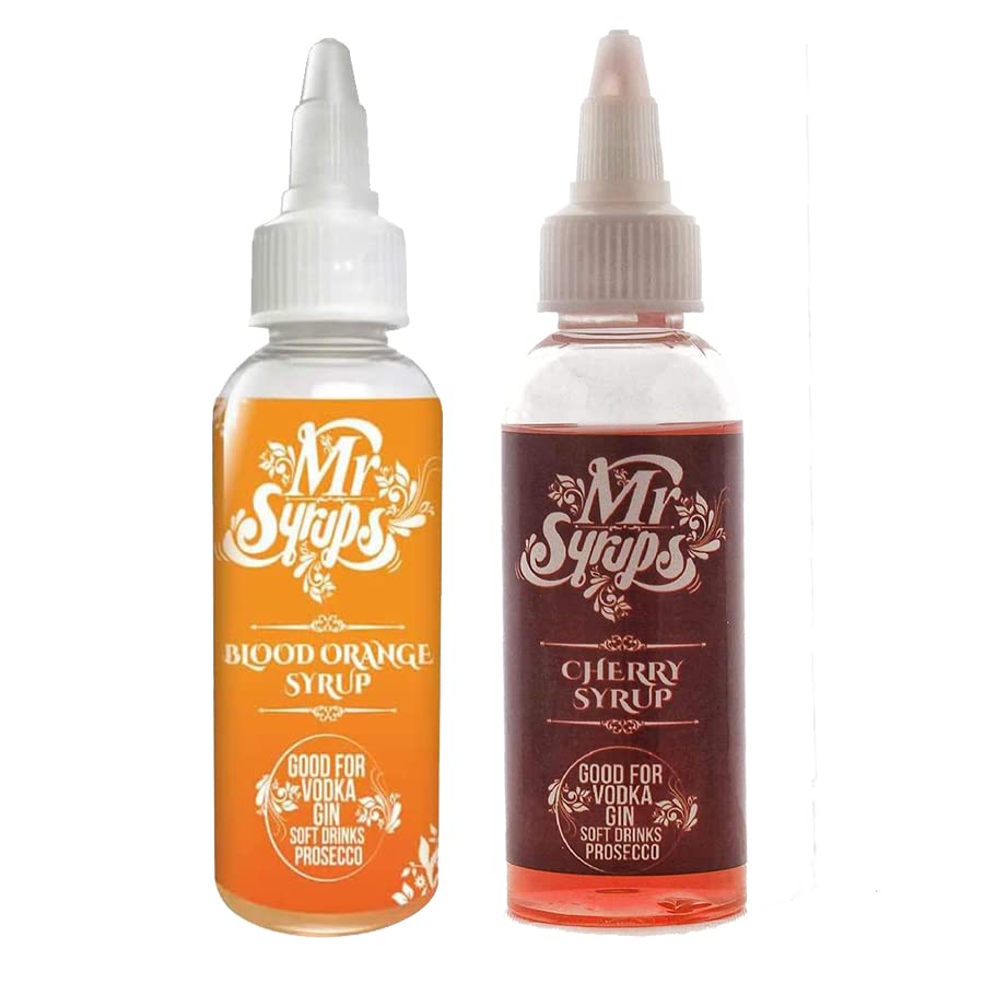 Mr Syrups Lot de 2 sirops aromatisés orange sanguine, cerise – Bouteille de 60 ml, faible en calories, sirop végétalien sans sucre pour café, cocktails, mocktails, thé glacé, milkshakes et pâtisseries