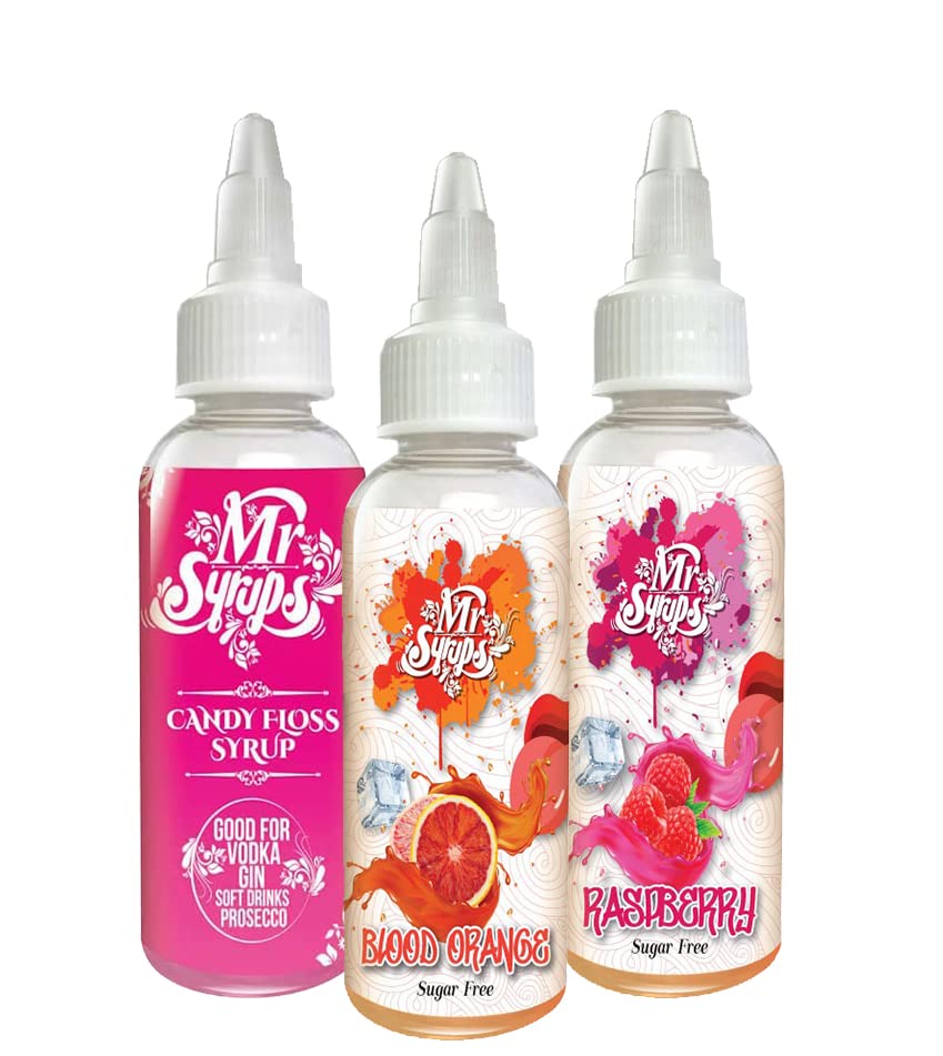 Mr Syrups Lot de 3 délicieux sirops aromatisés pour barbe à papa, orange sanguine, framboise, bouteille de 60 ml, sirop aromatisé sans sucre pour café, cocktails, mocktails, thé glacé, milkshakes et