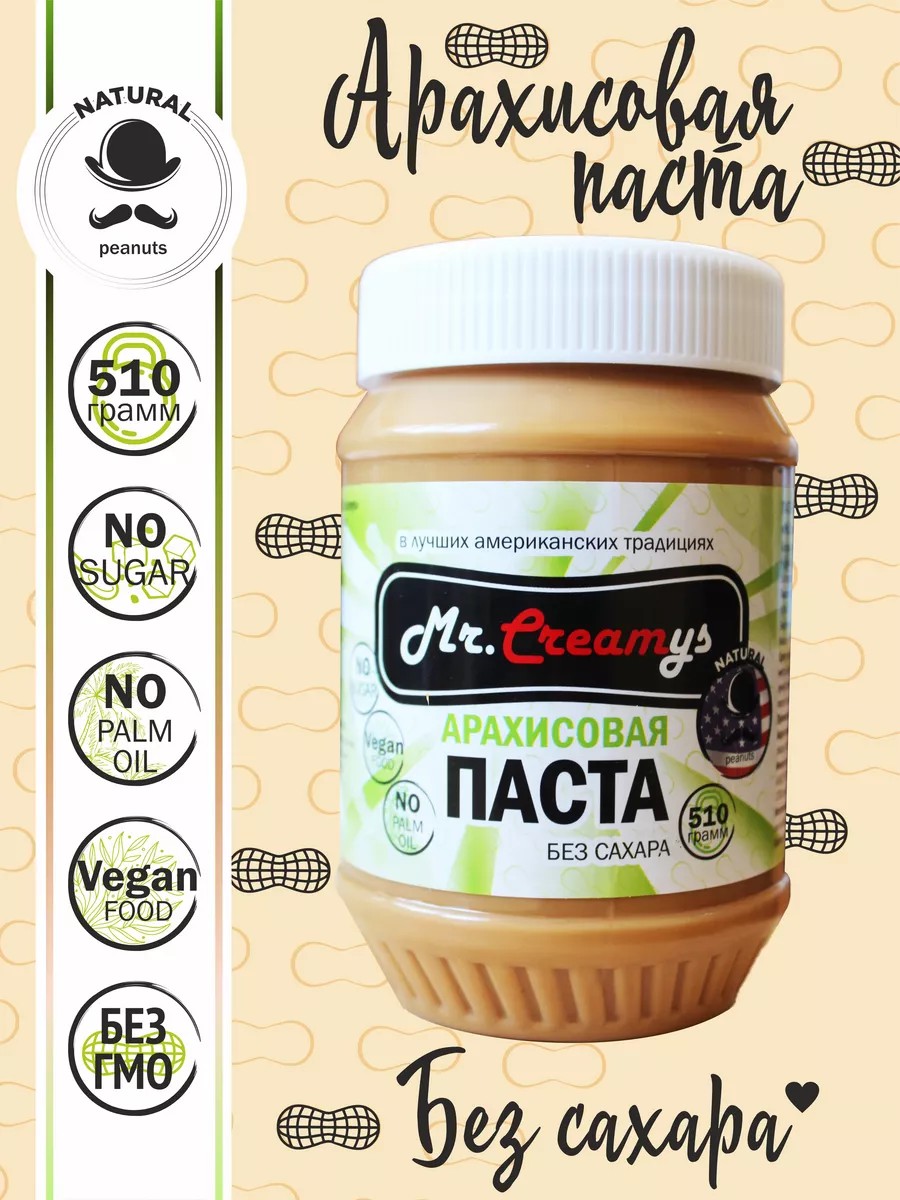 Арахисовая паста Mr. Creamys (Кримис) без сахара, в составе отборный, жаренный арахис 97,6% , растительные масла 1,4% ( рапсовое, хлопковое, соевое) и не много соли. Отличительной особенностью этой вкусняшки от нашей кремовой Арахисовой пасты Кримис , что ореховая паста не содержит сахара, при этом имеет такую же кремовою однородную текстуру, за счет супер тонкого помола. Благодаря Арахисовая пасты без сахара можно приготовить вкусный, полезный завтрак, с большим содержанием белка, а так же полезный перекус в течение всего дня. Арахис это продукт с большим содержанием белка, который необходим в первую очередь спортсменам. Отсутствие сахара дает возможность приготовить диетический продукт, пп продукт, а так же диабетический продукт, любителям полезной сладости. Арахисовая паста Mr.Creamys производиться на европейском оборудовании в Китае, что позволяет конкурировать с американской Арахисовой пастой. Отличный продукт для здорового питания, веганов и в пост. Без Сахара, Без ГМО