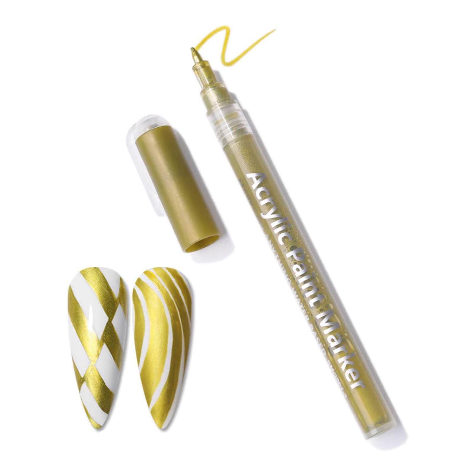 : Discover the ultimate nail future!Our nail future pencil meets all your requirements for nail art graffiti.With it you can freely paint patterns such as points, lines, flowers, stars, etc. on your nails.Regardless of whether you are a beginner or a professional nail studio, it is easy to control with our pen.In addition, it can not only be used as a graffiti pen, but also on nail powder or sequins. ✓ Get this versatile and innovative tool for your unique nail creations now! Application: 1. Please shake well before using it. 2. Press the pen tip vertically on paper for 5-10 seconds to activate the ink or press the tip repeated until the ink flows. 3. Please do not shake during use to avoid spilling the pigments. 4. Close the pen after use to prevent drying out. 5. Wait for graffiti painting until it is dry before applying the nail cover. Specification: Color white Material: PP, acrylic paint, water Product size: 13.6 cm length Scope of delivery: 1 x gold nail art pen A notice: Due to manual measurement, there may be minor size and weight deviations. Due to different monitors, there may be minor color deviations. Warnings Not accuratePerfect gift for womenThe 3D pen for manicure is ideal for meetings with friends and is also a great gift for women for birthday, Christmas, Thanksgiving or other special occasions.Whether a classic French or an individual design.Your imagination is the limit.Easy to useBefore use, shake the nail future in good to mix the ink evenly.Then repeatedly press the top of the pen until the ink flows out.Please make sure that you tighten the pen cap after use to prevent drying out in the air.Beginner or nail studiosCompared to nail brush, our nailart pen is easier to use and more suitable for beginners.Special nail polishes with intensive colors, a silky texture and fast drying.Suitable for yellowish, natural nails, acrylic nails and artificial nails.Give your nails a unique and trendy look!Beautiful DIY pattern on nailsThe fine order tip can be conjured up beautiful designs on your nails in no time.Rapidly drying and versatile - they can be used on lightack, natural nails, acrylic nails and artificial nails.Perfect for nail art enthusiasts that value quality and versatility.Creative nail art with 3D penOur nail future ink in bright gold is the ideal tool for your nail art creations.With this high-quality 3D pen you can draw precisely lines, create filigree patterns and let your imagination run wild.It helps you to create unique and personalized nail artwork.: Entdecken Sie den ultimativen Nagelkunststift! Unser Nagelkunststift erfüllt all Ihre Anforderungen an Nagelkunst-Graffiti. Mit ihm können Sie frei Muster wie Punkte, Linien, Blumen, Sterne usw. auf die Nägel malen. Egal, ob Sie Anfänger oder ein professionelles Nagelstudio sind, mit unserem Stift ist es einfach zu beherrschen. Darüber hinaus kann er nicht nur als Graffiti-Stift verwendet werden, sondern auch auf Nagelpulver oder Pailletten. ✓ Holen Sie sich jetzt dieses vielseitige und innovative Werkzeug für Ihre einzigartigen Nagelkreationen! Anwendung: 1. Bitte gut schütteln, bevor Sie ihn verwenden. 2. Drücken Sie die Stiftspitze vertikal für 5-10 Sekunden auf Papier, um die Tinte zu aktivieren, oder drücken Sie die Spitze wiederholt, bis die Tinte fließt. 3. Bitte nicht schütteln während der Verwendung, um ein Verschütten der Pigmente zu vermeiden. 4. Verschließen Sie den Stift nach Gebrauch fest, um ein Austrocknen zu verhindern. 5.Warten Sie nach dem Graffiti-Malen, bis es trocken ist, bevor Sie den Nagelüberlack auftragen. Spezifikation: Farbe: Weiß Material: PP, Acrylfarbe, Wasser Produktgröße: 13,6 cm Länge Lieferumfang: 1 x Gold Nagelkunst-Stift Hinweis: Aufgrund manueller Messung kann es zu geringfügigen Größen- und Gewichtsabweichungen kommen. Aufgrund unterschiedlicher Monitore kann es zu geringfügigen Farbabweichungen kommen. WARNHINWEISE Nicht zutreffendPerfektes Geschenk für FrauenDer 3D Stift für Maniküre eignet sich ideal für Treffen mit Freunden und ist auch ein großartiges Geschenk für Frauen zum Geburtstag, zu Weihnachten, Thanksgiving oder anderen besonderen Anlässen. Ob ein klassisches French oder ein individuelles Design. Ihrer Fantasie sind keine Grenzen gesetzt. Einfach zu BedienenVor Gebrauch den Nagelkunststift gut schütteln, um die Tinte gleichmäßig zu mischen. Drücken Sie anschließend wiederholt auf die Stiftspitze, bis die Tinte herausfließt. Bitte stellen Sie sicher, dass Sie die Stiftkappe nach Gebrauch fest verschließen, um ein Austrocknen an der Luft zu verhindern. Anfänger oder NagelstudiosIm vergleich zu nagelbürste ist unser nailart stift einfacher zu bedienen und besser für anfänger geeignet. Besondere Nagellacke mit intensiven Farben, einer seidigen Textur und schnellem Trocknen. Geeignet für Gellack, Naturnägel, Acrylnägel und künstliche Nägel. Verleihen Sie Ihren Nägeln mit unserem Nagelkunststift aus MrCuvaryas einen einzigartigen und trendigen Look!. Schöne DIY-Muster auf NägelnDurch die feine Auftragespitze lassen sich im Handumdrehen schöne Designs auf ihre Nägel zaubern. Schnell trocknend und vielseitig einsetzbar – sie können auf Gellack, Naturnägeln, Acrylnägeln und künstlichen Nägeln verwendet werden. Perfekt für Nail-Art-Enthusiasten, die Wert auf Qualität und Vielseitigkeit legen. Kreative Nagelkunst mit 3D StiftUnser Nagelkunststift in strahlendem Gold ist das ideale Werkzeug für Ihre Nail-Art-Kreationen. Mit diesem hochwertigen 3D-Stift können Sie präzise Linien ziehen, filigrane Muster erstellen und Ihrer Fantasie freien Lauf lassen. Er hilft Ihnen, einzigartige und personalisierte Nagelkunstwerke zu schaffen.MrCuvaryas 3D Stift Gold Nagellack, Nagelkunststift DIY Linie Nagelkunst Graffiti, Nagelspitze Nail Art Pen Schmücken Maniküre Werkzeuge, Graffiti Stifte Pinsel Nageldesign für Frauen Schönheit (Gold)