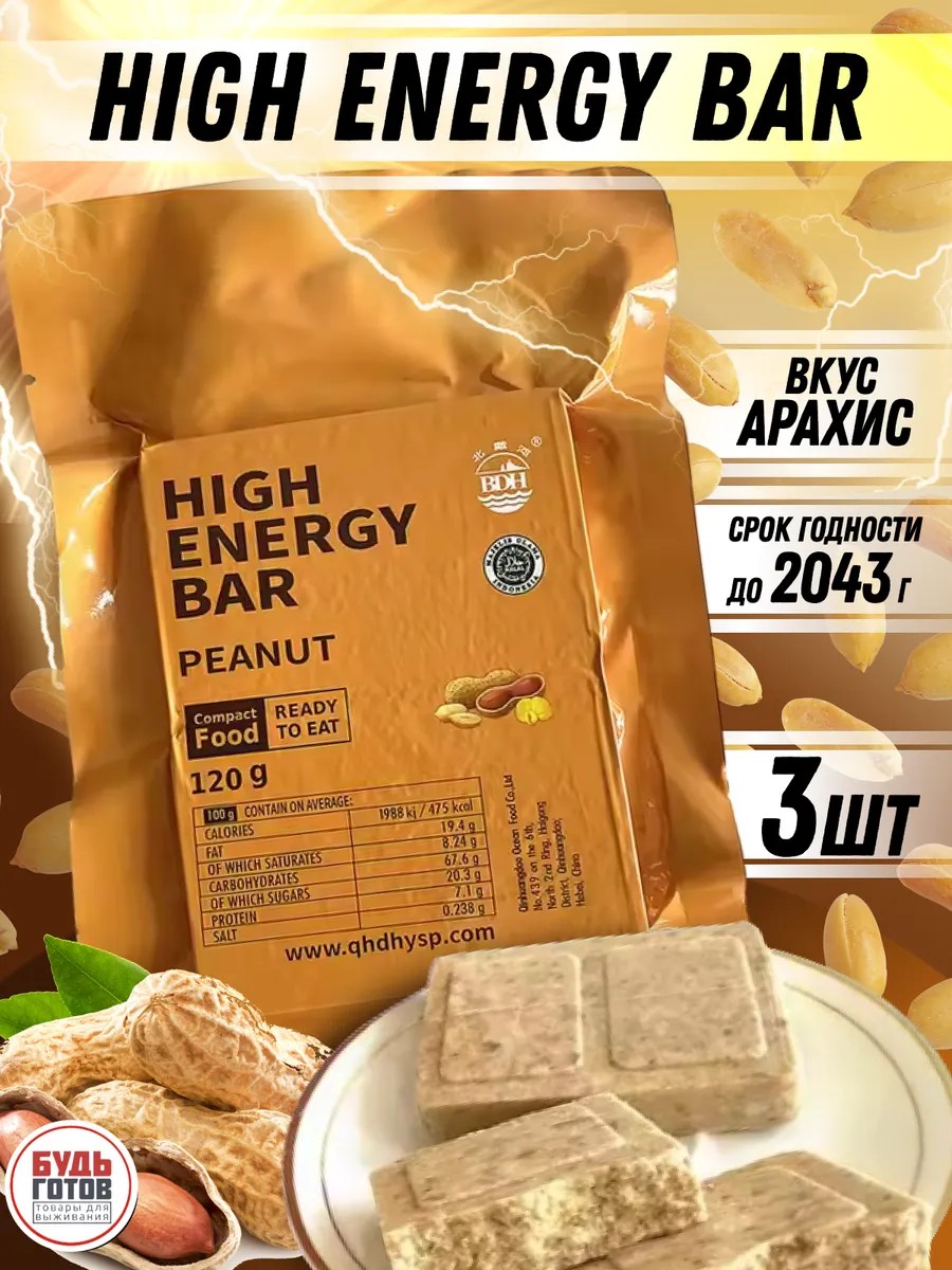 Аварийный рацион питания HIGH ENERGY BAR со вкусом арахиса — это идеальный выбор для тех, кто ищет надежное и питательное решение для утоления голода в экстремальных условиях. Эти высококалорийные брикеты изготавливаются из качественных ингредиентов, таких как пшеничная мука, сахар, масло и молочные продукты, которые проходят процесс холодного измельчения, обжаривания и прессовки. Такой подход позволяет сохранить все полезные вещества и витамины, что делает этот продукт настоящим зарядом энергии.