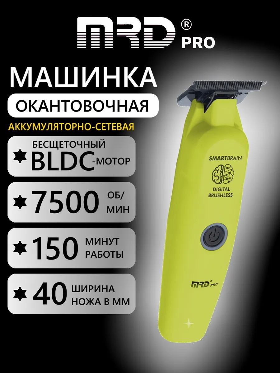 Edging hair clipper, battery, 7200 rpm, 40 mm blade MRD MRD-GMT-3969ST green. - Edging hair clipper with BLDC motor - TECHNICAL SPECIFICATIONS: • Brushless BLDC motor. • Fast and powerful 7200 rpm motor. • Low noise level. • Blade material - high-carbon stainless Japanese steel 440C. • Rockwell hardness 62-63 HRC for maximum sharpness and a longer service life.