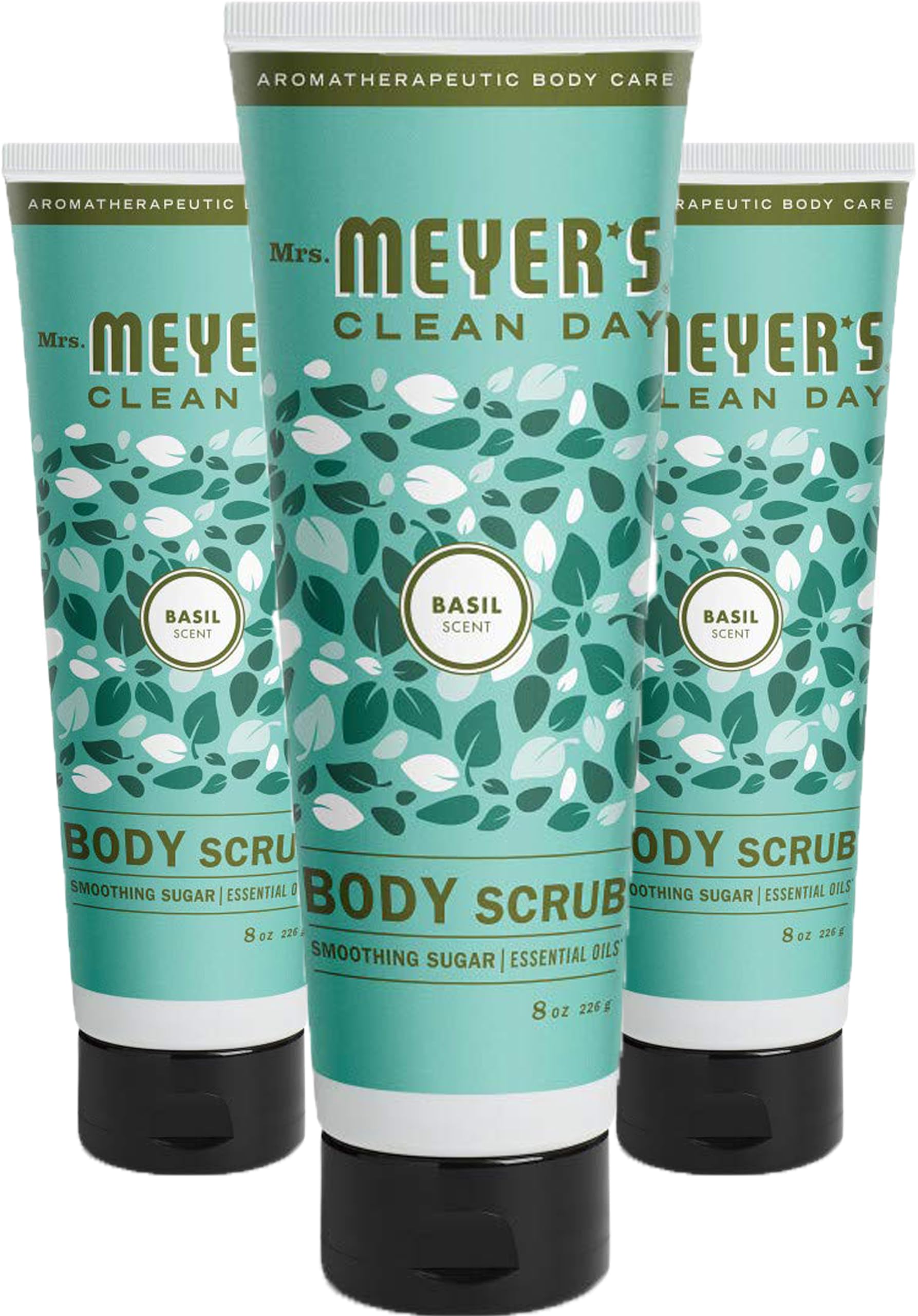 Mrs. Meyer's Clean Day Exfoliating Body Scrub Sugar Scrub that Leaves Skin Feeling Hydrated & Fresh Made with Essential Oils 8 oz (Basil 8 Ounce (3 Pack))