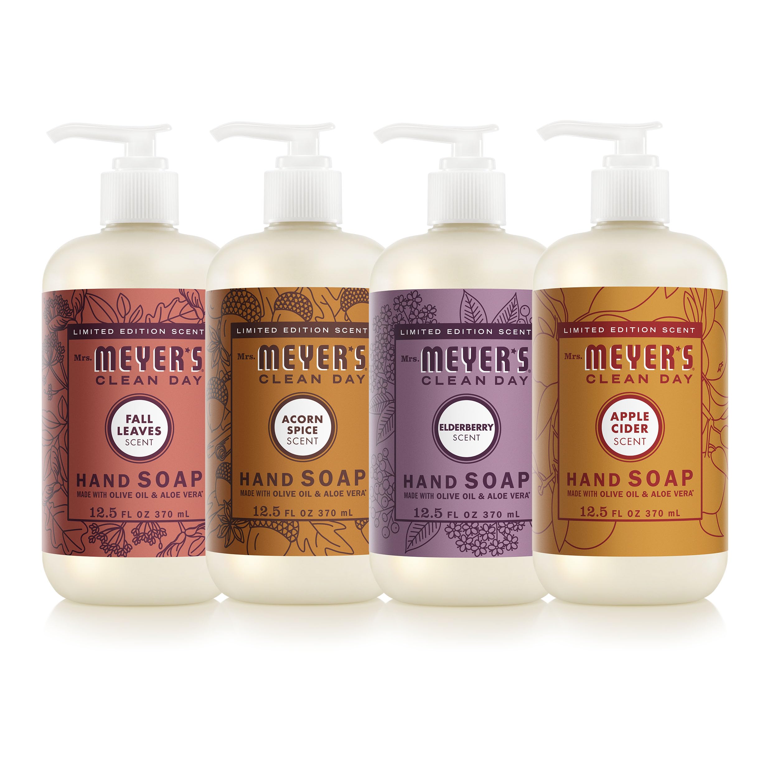 Mrs. MEYER'S Clean Day Fall Hand Soap Set, Includes Acorn Spice, Fall Leaves, Apple Cider, and Elderberry