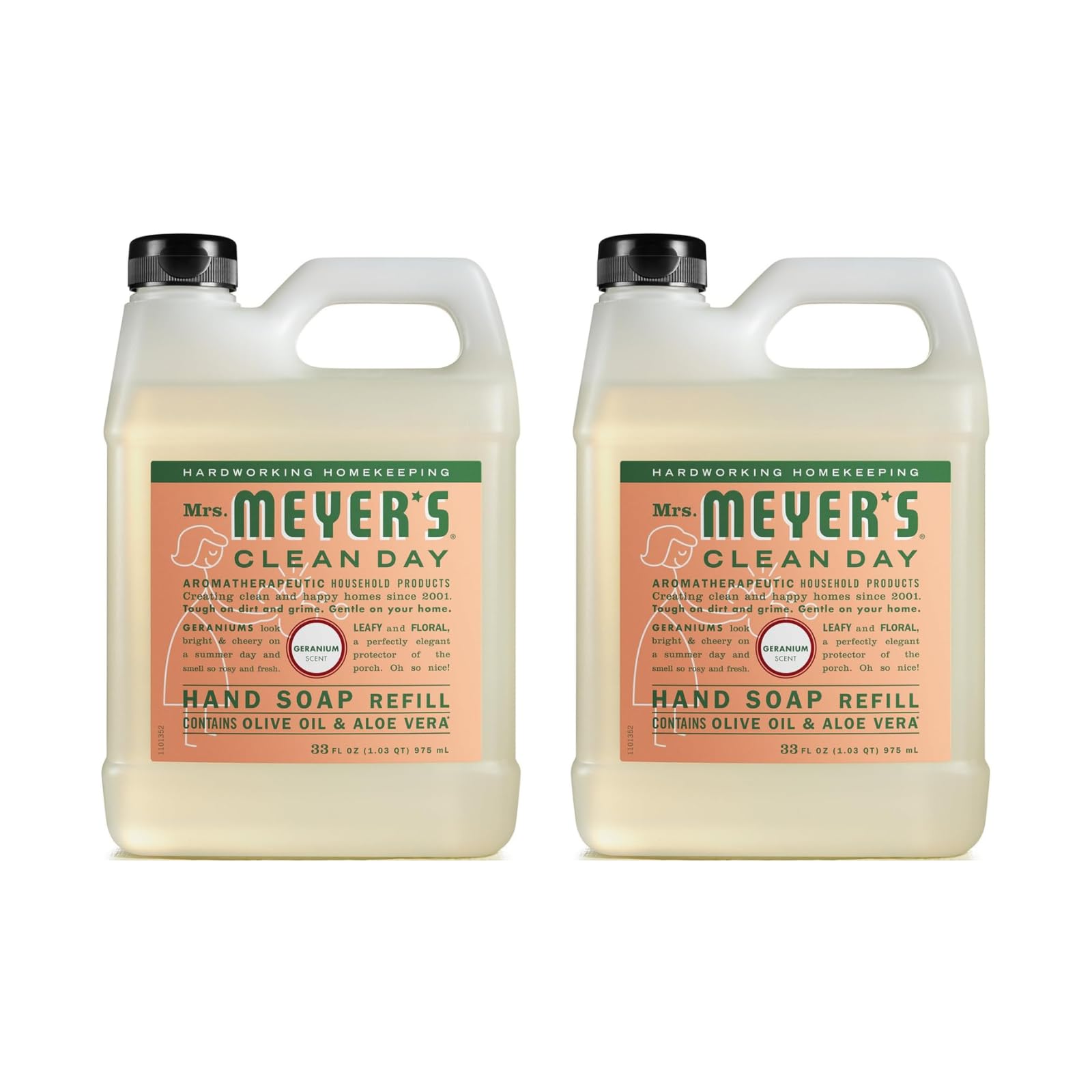 MRS. MEYER'S CLEAN DAY Hand Soap Refill Made with Essential Oils Geranium 33 fl. oz. (Pack of 2)