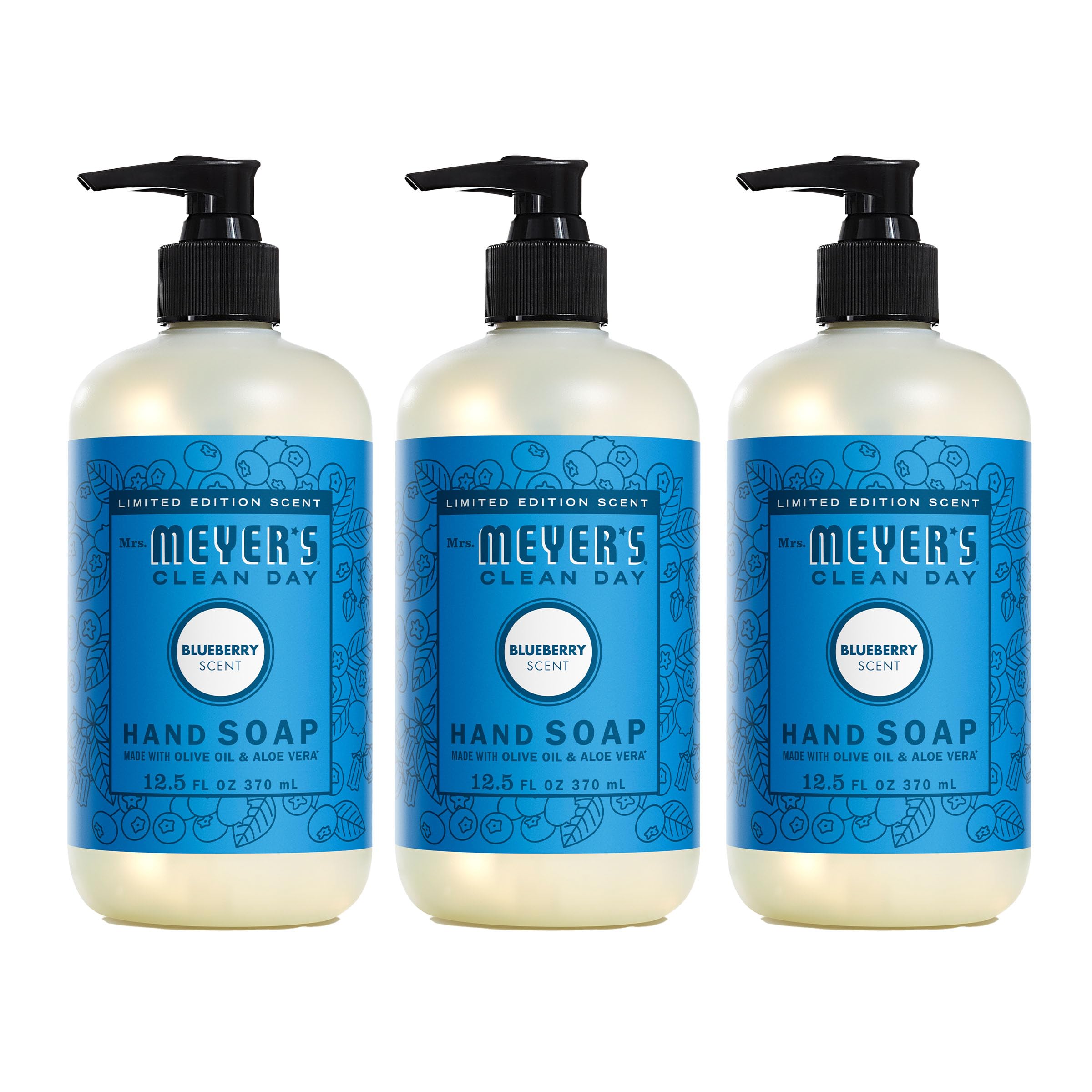 Mrs. MEYER'S Clean Day Liquid Hand Soap, Blueberry Scent, 12.5 Ounce Bottle (Pack of 3) Blueberry 12.5 Fl Oz (Pack of 3)