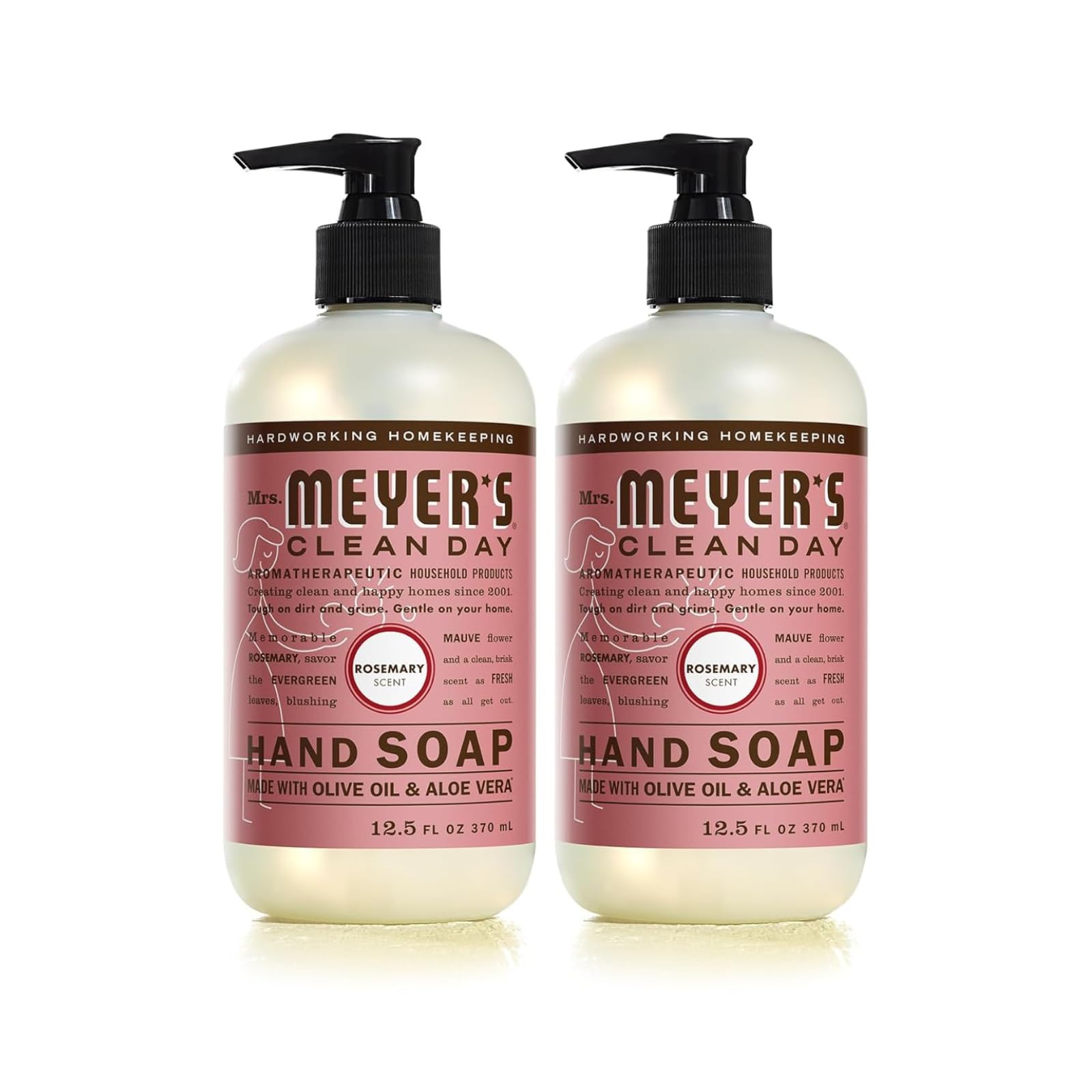 Mrs. Meyer's Clean Day hand soaps are specifically made to clean and freshen hands without drying, while also providing a special, singular scent for your entire home. Savor the memorable and hearty scent of our Rosemary hand soap with clean, brisk evergreen leaves and blushing mauve flowers. This hard-working hand soap formula contains olive oil, aloe vera, and essential oils, that clean and freshen hands. These thoughtfully chosen ingredients create a non-drying yet softening soap for busy hands. Made without parabens, phthalates, animal-derived ingredients, and always a cruelty-free soap. Also available in other garden-inspired scents and products such as body lotions, laundry detergents, candles, and so much more! Mrs. Meyer's – rooted in goodness.