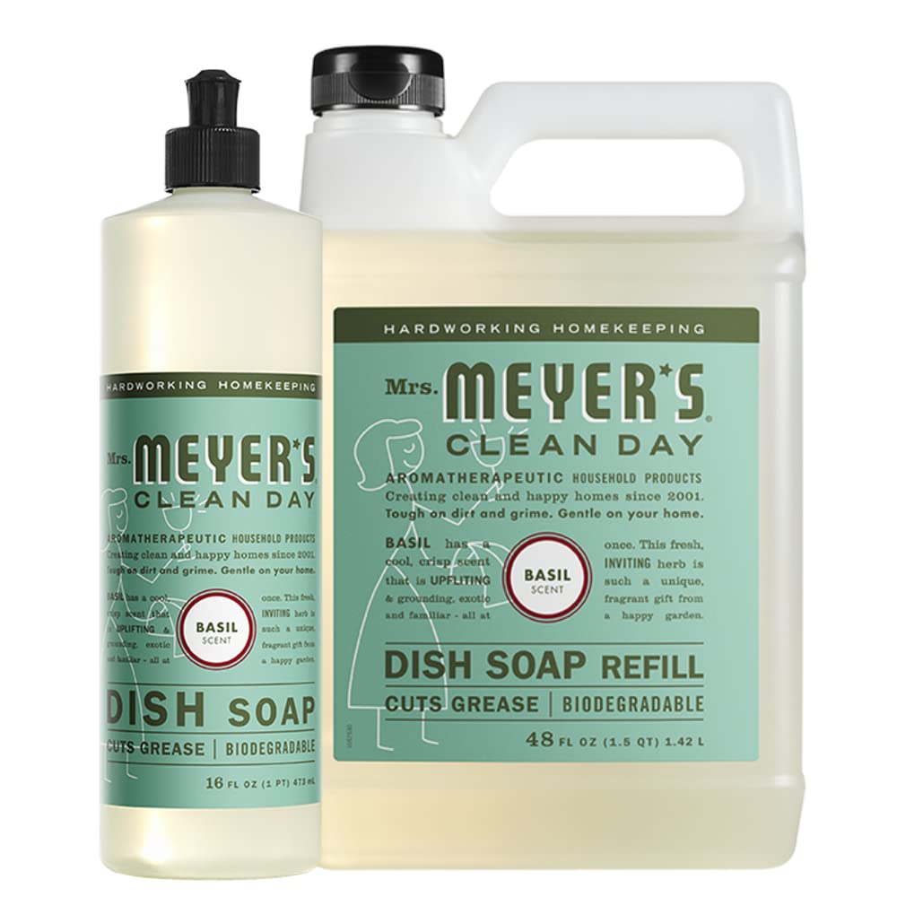 Mrs. Meyer's Liquid Dish Soap Refill, Biodegradable Formula, Basil, 48 fl. oz Basil Refill