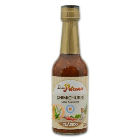 Chimichurri Doña Petrona. Traditional Argentinian sauce. It can be used for marinating (particularly beef) and also in sauces, sautéed vegetables, casseroles, salads, chicken, fish, soups and casseroles. Chimichurri is made by finely chopping parsley, chili and garlic and then adding vegetable oil and white vinegar. Optionally, you can also add, always finely chopped, also paprika, oregano, cumin, thyme, coriander, lemon and bay leaf. It is usually used as the sole spice for barbecue parties, chorizo and asado. It is also used to marinate meat before grilling. INSTRUCTIONS FOR USE Can be used as a marinade (especially for beef) and in sauces, baked vegetables, stews, salads, chicken, fish, soups and casseroles.Doña Petrona. Argentijnse chimichurrisaus, ideaal voor marineren (vooral rundvlees) en ook in sauzen, 190 milliliter. Chimichurri Doña Petrona. Traditionele Argentijnse saus. Het kan worden gebruikt voor marineren (met name rundvlees) en ook in sauzen, gebakken groenten, stoofschotels, salades, kip, vis, soepen en stoofschotels. Chimichurri wordt gemaakt door fijngehakte peterselie, chili en knoflook en vervolgens door toevoeging van plantaardige olie en witte azijn. Naar keuze kun je ook toevoegen, altijd fijngehakt, ook paprika, oregano, komijn, tijm, koriander, citroen en laurierblad. Het wordt meestal gebruikt als enige specerij voor barbecuefeesten, chorizo en asado. Het wordt ook gebruikt om vlees te marineren voor het grillen. GEBRUIKSAANWIJZING Te gebruiken als marinade (vooral voor rundvlees) en in sauzen, gebakken groenten, stoofschotels, salades, kip, vis, soepen en stoofschotels.