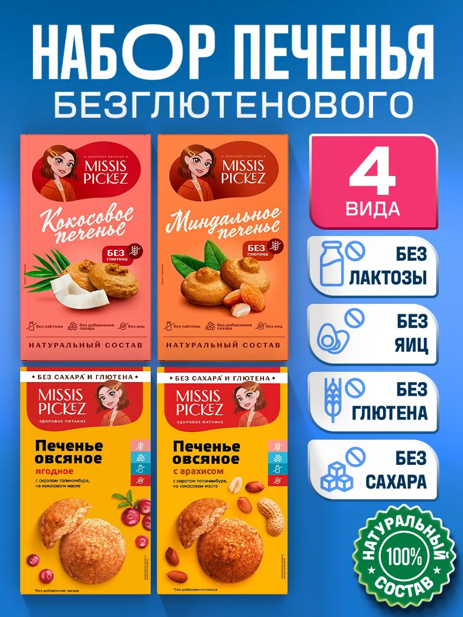 | Вид печенья | Сладкое печенье без лактозы, сахара, глютена |