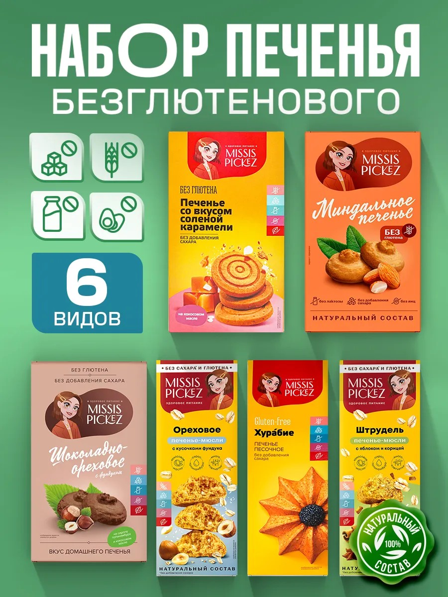 Печенье без сахара и глютена ассорти №13, 6 шт. по 100 г