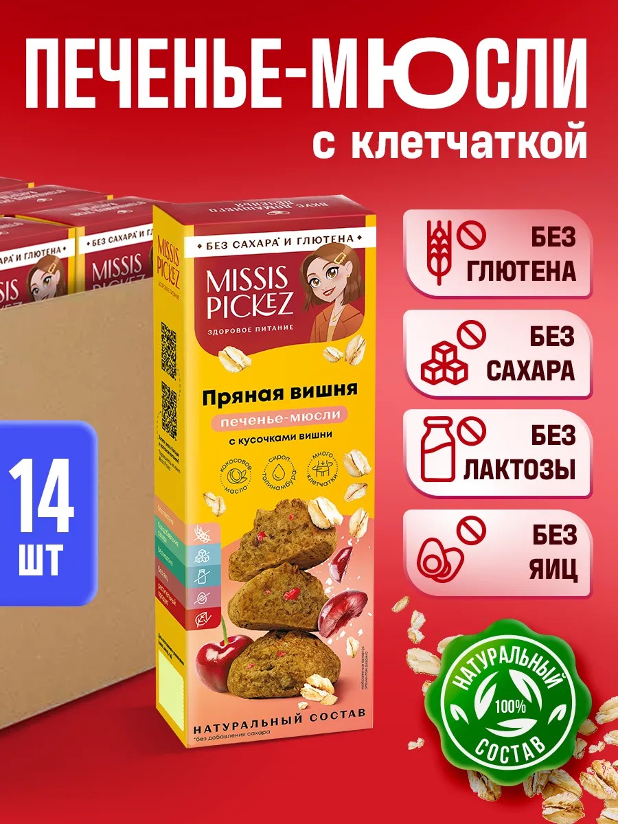 Печенье-мюсли Пряная вишня с кусочками вишни "Missis Pickez", вкусная сладость для любителей здорового питания.