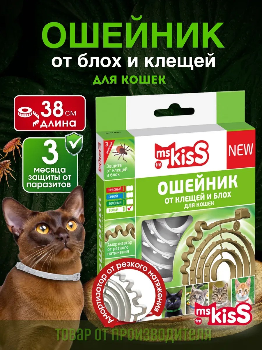 MsKiss Ошейник от блох и клещей для кошек белый 38 см