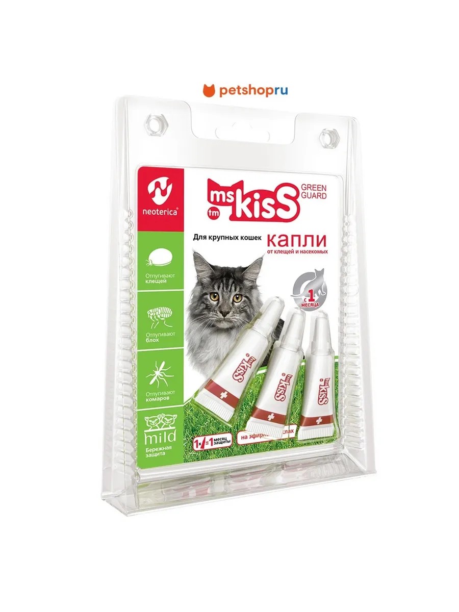 MsKiss Капли репеллентные для крупных кошек более 2 кг, 3х2,5 мл