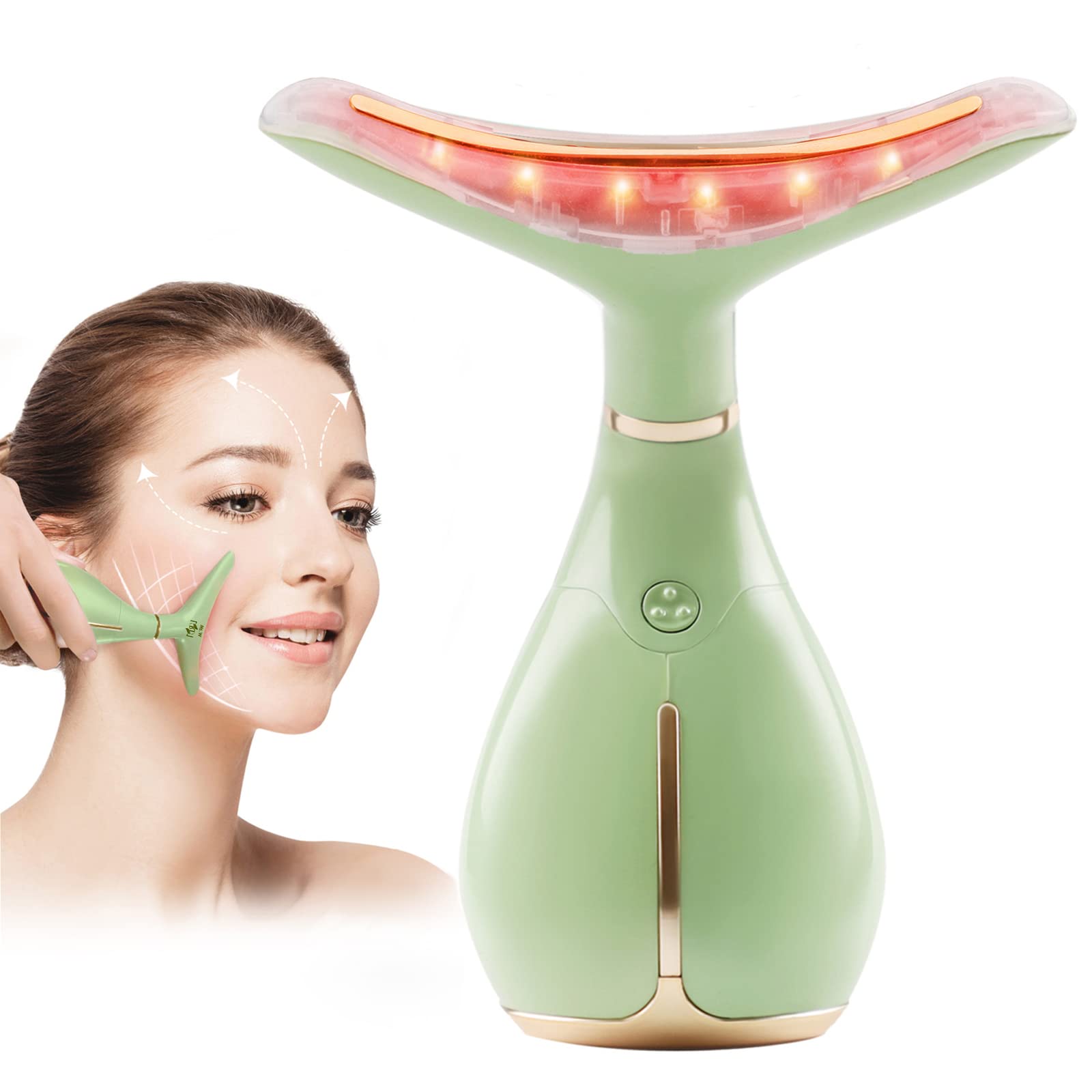 Handheld skin tightening device: portable face massage device is easy to wear.Massage device packed in a gift box: 1x face massage device 1x operating instructions, 1x cleaning cloth, 1x USB charging cable, 1x transport bag.Note: 30 days of money back guarantee and 1 year quality guarantee.If your skin is very sensitive or has scars, we do not recommend that you use this device.Unique dolphin design: Face lift lifting machine with charming appearance, skin tightening machine is a perfect gift for women.According to the ergonomic theory, the massage head is specially designed for the face, infusion of energy in every inch of the skin.USB rechargeable beauty device: Ms.W facial massage device with USB rechargeable, which is easy to connect to wall adapter or computer.Note: Load the high frequency facelift device for 3 hours before the first use!The facial massage device automatically switches off after two minutes without work.High frequency vibration 45 5 Heat facial massage device: beauty electrical face massage device with ergonomic structure design, convenient to massage face neck, activate the skin, skin tightening, improve the elasticity of the skin, remove acne lightening that the skinsees looks smooth and healthy.Three Modi Face Lift Device: Face Shaper with 3 massage modes, good for the daily face of face.Fold, shrink pores and make skin tightening.Handheld Hautstraffungsgerät: Tragbares Gesichtsmassagegerät ist leicht zu tragen. Massagegerät verpackt in einer Geschenkbox: 1xGesichtsmassagegerät 1x Bedienungsanleitung, 1x Reinigungstuch, 1x USB-Ladekabel, 1xTransporttasche. Hinweis: 30 Tage Geld-zurück-Garantie und 1 Jahr Qualitätsgarantie. Wenn Ihre Haut sehr empfindlich ist oder Narben hat, empfehlen wir Ihnen nicht, dieses Gerät zu verwenden. Einzigartiges Delphin-Design: Gesichtsstraffung Lifting Maschine mit charmanten Aussehen, Hautstraffung Maschine ist ein perfektes Geschenk für Frauen. Nach der ergonomischen Theorie ist der Massagekopf speziell für Gesicht, Infusion von Energie in jeden Zentimeter der Haut konzipiert. USB wiederaufladbares Schönheitsgerät: Ms.W Gesichtsmassagegerät mit USB wiederaufladbar, das ist einfach, mit Wandadapter oder Computer zu verbinden. Hinweis:Laden Sie das Hochfrequenz-Facelift-Gerät für 3 Stunden vor dem ersten Gebrauch! Das Gesichtsmassagegerät schaltet sich automatisch nach zwei Minuten ohne Arbeit aus. Hochfrequenz-Vibration 45 5Wärme Gesichtsmassagegerät: Schönheit elektrisches Gesicht Massagegerät mit ergonomischer Struktur Design, bequem zu massieren Gesicht Hals, aktivieren Sie die Haut, Hautstraffung, verbessern die Elastizität der Haut, entfernen Sie Akne Aufhellung, die die Haut sieht glatt und gesund machen wird. Drei Modi Face Lift Gerät: Face Shaper mit 3 Massage-Modi, gut für die tägliche Gesichtshautpflege.Micro glow einschließlich insgesamt drei LED-Leuchten (blau, grün, rot), Hochfrequenz-Gesicht und Hals straffende Gerät hilft, Gesicht, Anti-Falten heben, schrumpfen Poren und machen Hautstraffung.Ms.W Gesichts Massagegerät Elektrisches Gesichtsstraffungsgerät, Gesichtsmassagegerät Gegen Falten Ultraschallgerät für Zuhause, Ultraschall Gesicht Gerät Massage, 3 Modi Anti Falten Gesichtsmassage 1 Grün und Gold