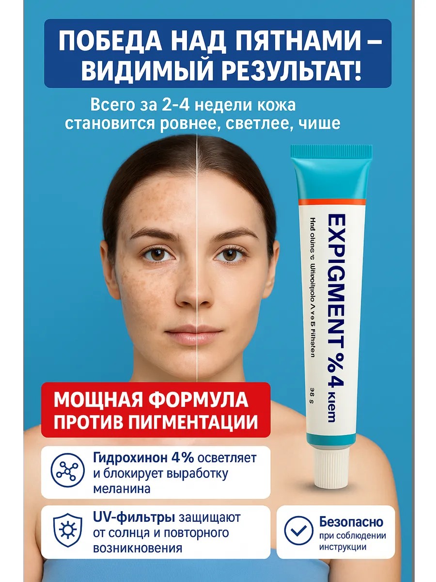 Expigment 4% крем с гидрохиноном — мощное средство против пигментных пятен, мелазмы и гиперпигментации