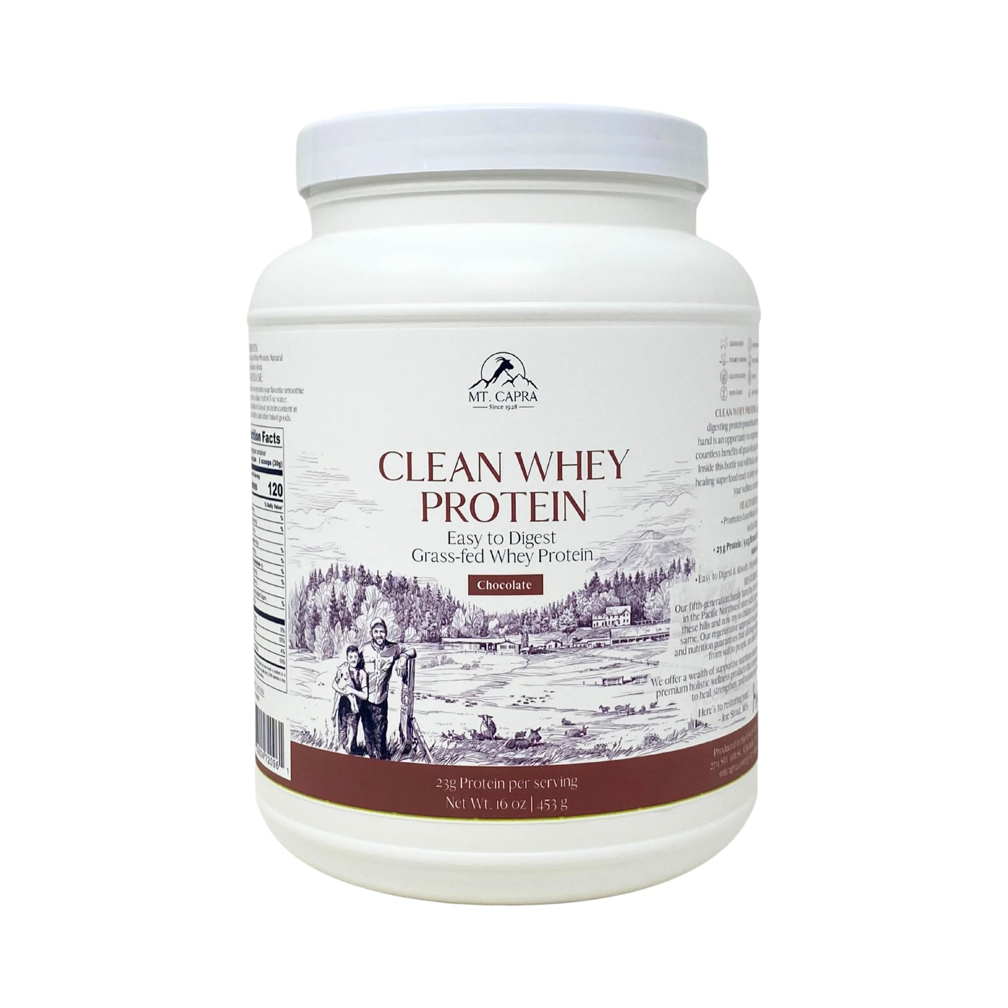 Mt. Capra Clean Whey Protein | Grass-Fed Undenatured Goat Whey Protein Powder | 23 g Protein Per Serving, All Natural, High in Branch Chain Amino Acids | Chocolate 1 lb (15 Servings)