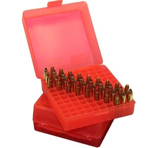 MTM 100 Round Flip-Top Ammo Box 40/45/10MM Cal (Clear Red)