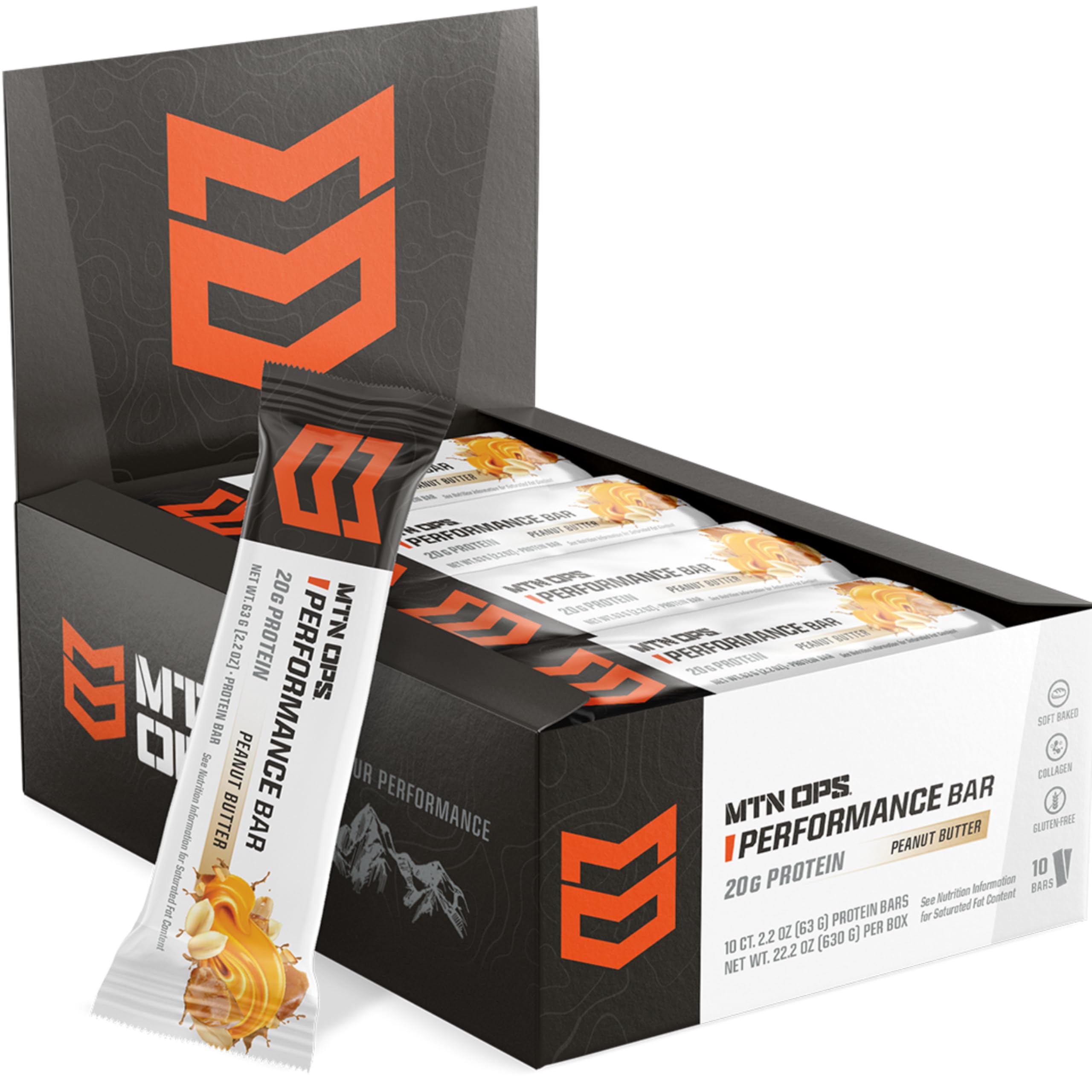 MTN OPS Protein Bars High Protein Bar with Whey Isolate Whey Concentrate & Collagen Low Sugar Gluten-Free Protein Snack Peanut Butter Bliss 10 Count Performance Bar Peanut Butter Bliss
