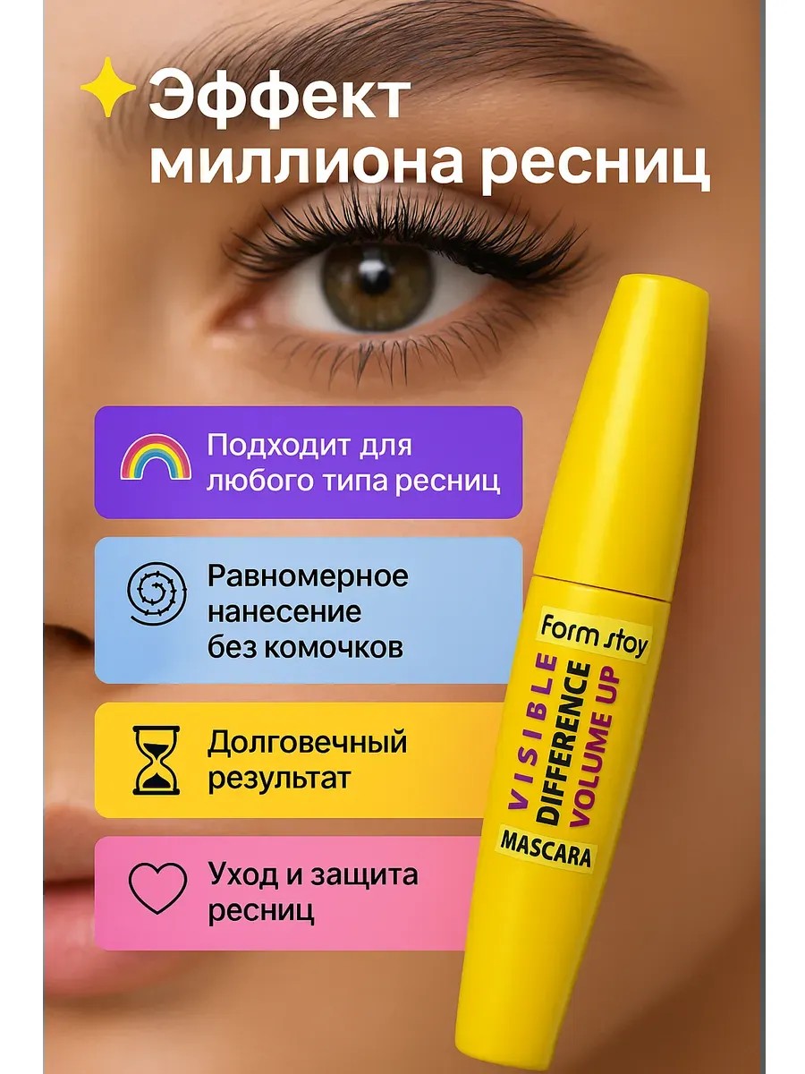 Тушь Фарм Стэй — идеальный выбор для создания выразительного взгляда: от лёгкого дневного макияжа до драматичного вечернего образа.