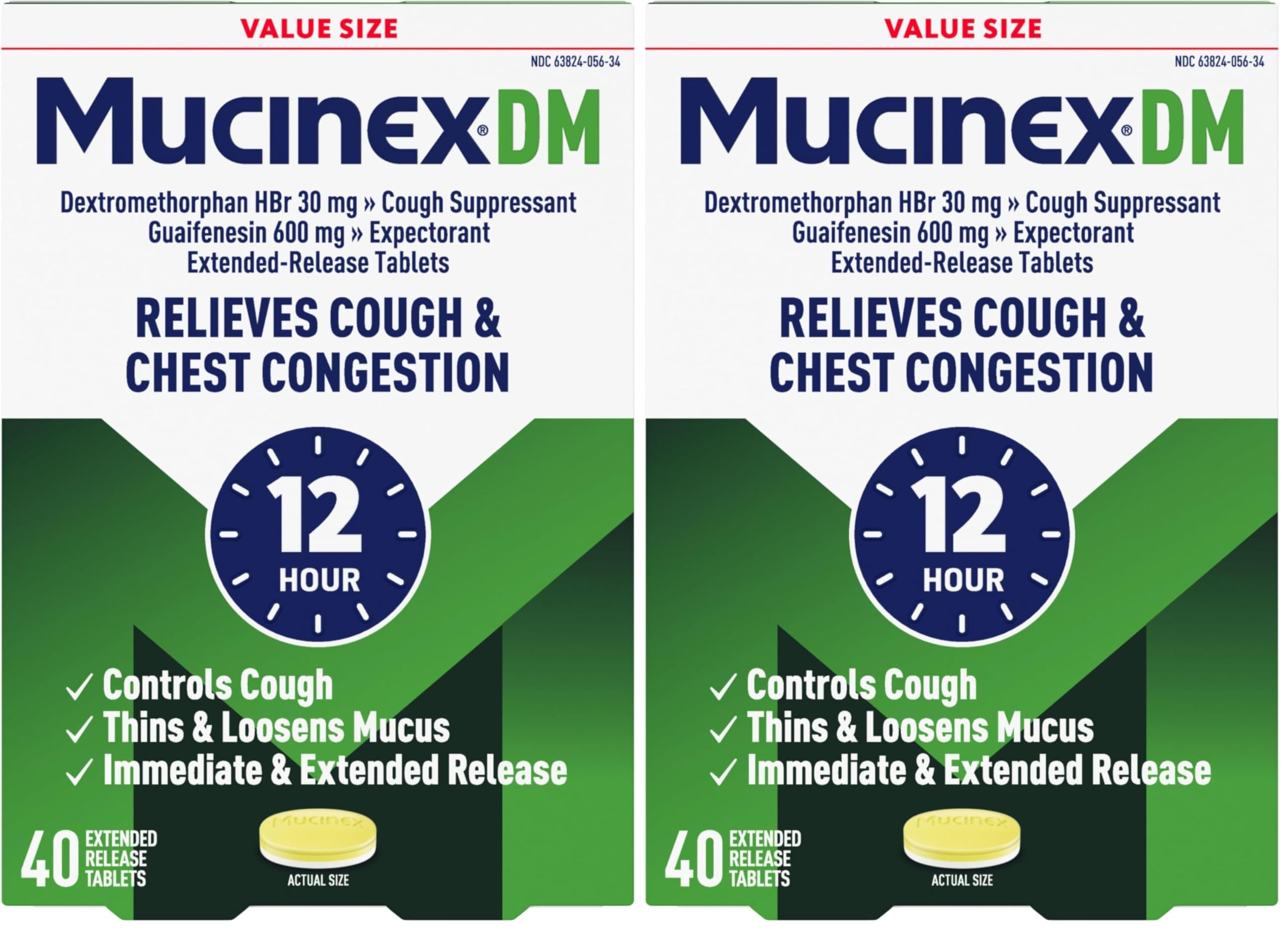 Mucinex Cough Suppressant and Expectorant DM 12 Hr Relief Tablets 600 mg Multicolor 40 Count (Pack of 2)