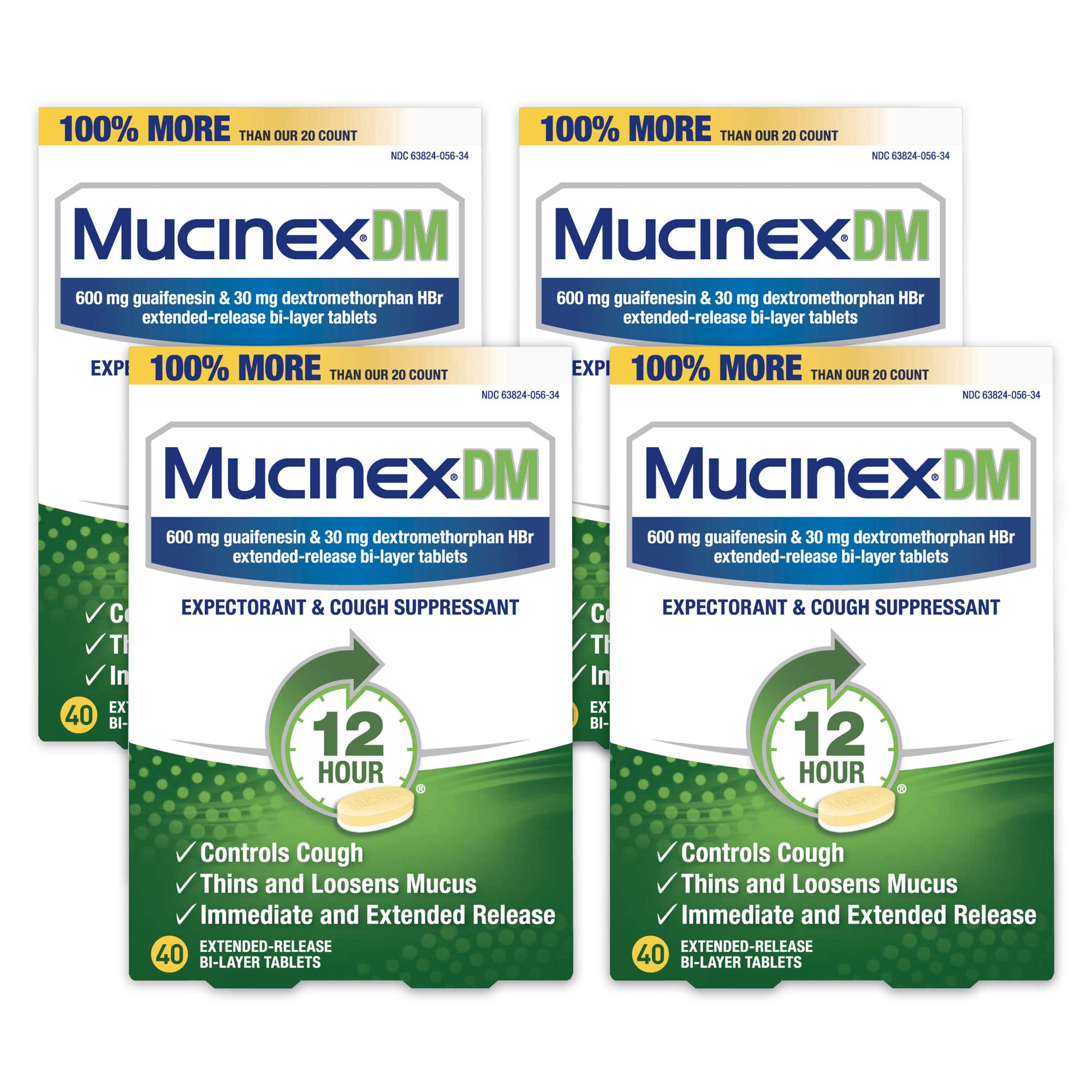 Mucinex DM 12-Hour Expectorant and Cough Suppressant Tablets 40 ct (Pack of 4)