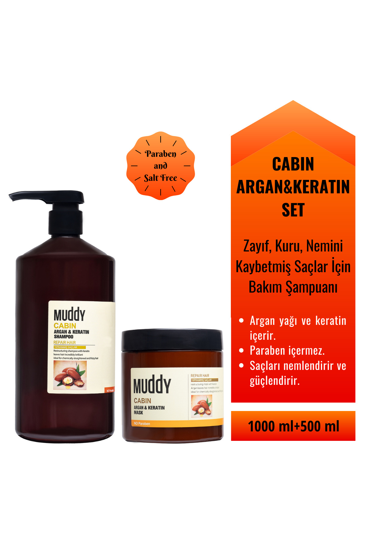 Muddy Cabin Argan & Keratin Shampoo 1000 ml Cabin Argan And Keratin Mask 500 ml