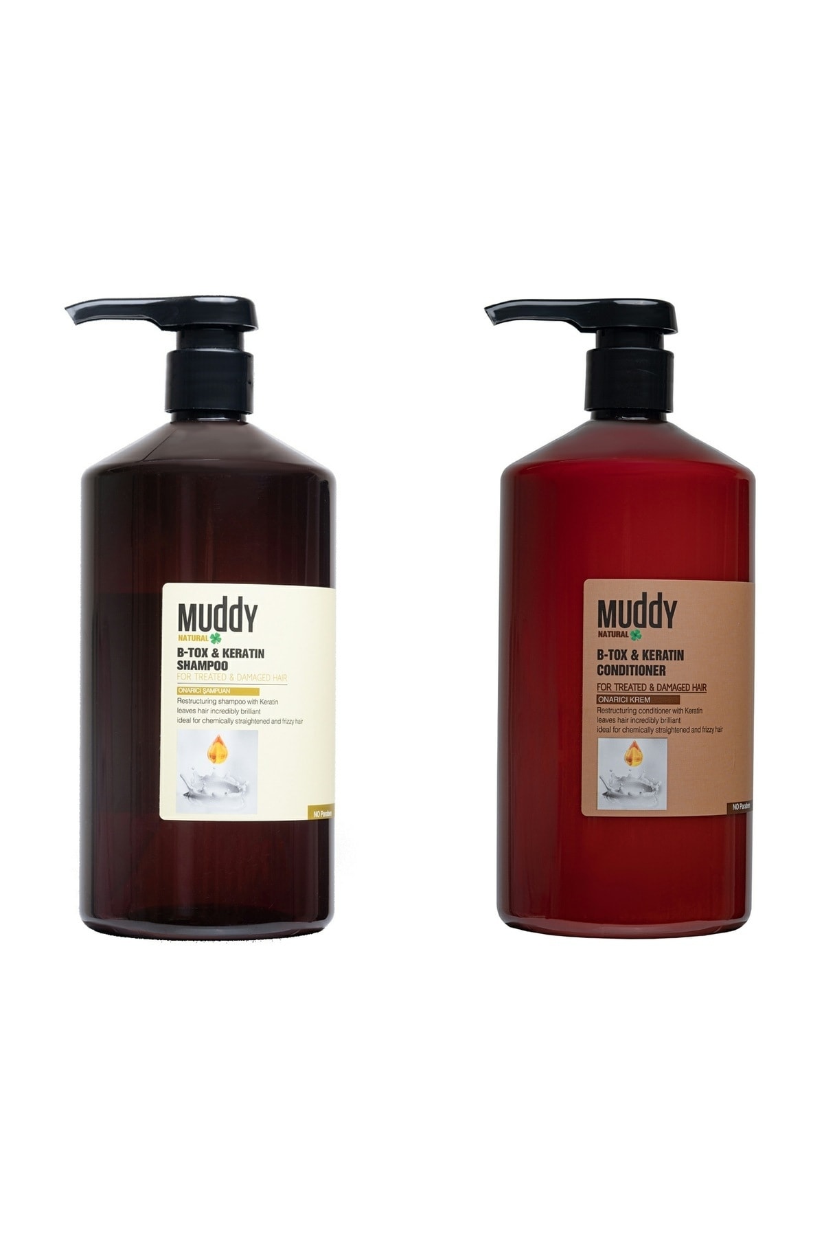 Muddy Extremely Damaged Hair B-tox & Keratin Shampoo 1000 ml + Repairing B-tox & Keratin Conditioner Cream 1000 ml