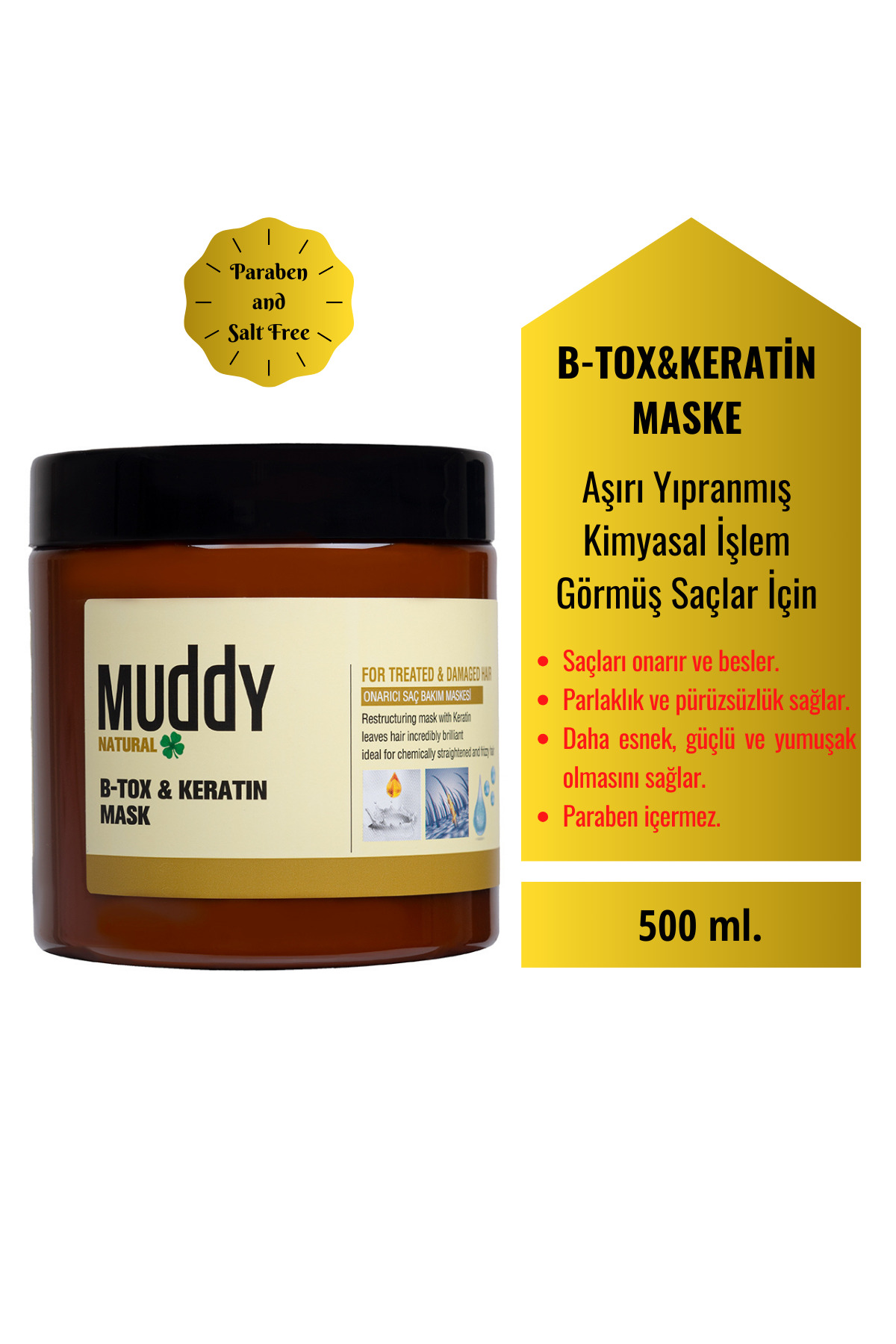 Muddy Nourishing and Repairing B-tox Keratin Hair Care Mask for Extremely Damaged Hair 500 ml