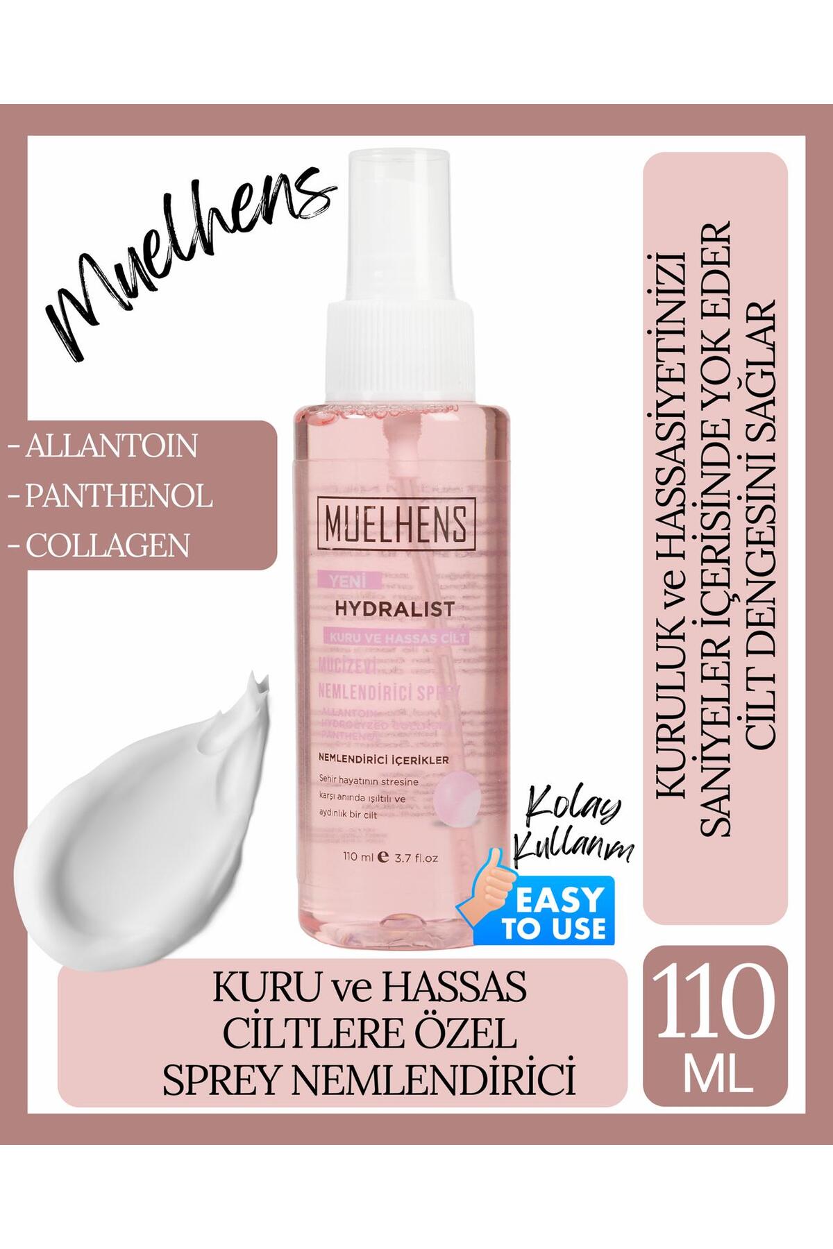 MUELHENS HYDRALIST INTENSIVE MOISTURIZING CARE SPRAY DRY AND SENSITIVE SKIN 110 ML Your skin, which is exposed to environmental factors such as air pollution, dust and cigarette smoke during the day, loses its moisture, becomes dull and loses its vitality. ONLY YOU WILL KNOW THE SECRET OF YOUR SKIN WITH THE INTENSIVE MOISTURIZING SPRAY By using MUELHENS Hydralist Intensive Moisturizing Spray whenever you need it during the day, you will instantly get moist, lively and bright skin. You can continue your day happily while removing the moisture needed by the pale and dull appearance of dry and sensitive skin in seconds. It helps your skin gain a healthy, natural and silky appearance. You can also use it after make-up with its light and silky structure. Warnings: Used externally. Keep away from children and sunlight. Store at room temperature, tightly closed. Avoid contact with eyes. In case of contact, rinse with plenty of water. Before using the product, test and use it behind the ear or inside the ear. In case of irritation, wash your skin with plenty of water and discontinue use. Usage: Hold it at a distance of 15-20 cm from clean skin, close your eyes, press the pump and spray directly on your face.