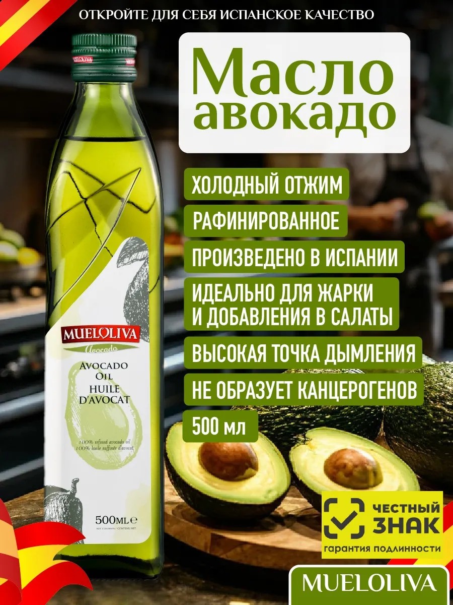 Mueloliva Масло Авокадо Пищевое для Салатов, для Жарки, 500 мл