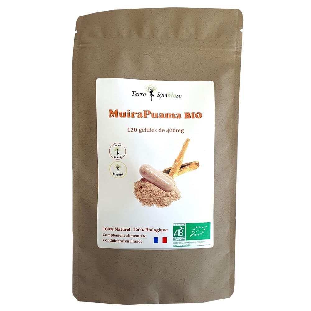 Muira Puama, also known as Bois Bandé, is a plant native to South America, particularly found in the region of Brazil. The bark and roots of this plant have traditionally been used for its potential properties as a natural tonic and aphrodisiac. Muira Puama is often associated with several potential benefits, although its effects are not universally proven. Some of the claimed benefits include improving libido, stimulating erectile function in men, relieving stress and fatigue, and positive effects on the overall health of the nervous system. INGREDIENTS Composition per 1 capsule: 400mg of Organic MuiraPuama Bark Powder, Ptychopetalum Olacoides. Origin Brazil – . Vegan vegetable capsule 0.11g, Product from non-EU organic farming. Certified by FR-BIO-09. Packed in France in our workshop. Net weight: 61.2gr400mg capsules of Miura Puama Bio. La Muira Puama, également appelé Bois bandé, est une plante originaire d'Amérique du Sud, particulièrement présente en ie au Brésil. On utilise traditionnellement l'écorce et les racines de cette plante pour ses propriétés potentielles en tant que tonique et aphrodisiaque naturel. La Muira Puama est souvent associée à plusieurs bienfaits potentiels, bien que ses effets ne soient pas universellement prouvés. Certains des bénéfices allégués incluent l'amélioration de la libido, la stimulation de la fonction érectile chez les hommes, le soulagement du stress et de la fatigue, ainsi que des effets positifs sur la santé générale du système nerveux. INGRÉDIENTS Composition pour 1 gélule: 400mg de Poudre d'écorce de MuiraPuama biologique, Ptychopetalum Olacoides. Origine Brésil – ie. Gélule végétale Vegan 0.11g, Produit issu de l'agriculture biologique non-UE. Certifié par FR-BIO-09. Conditionné en France dans notre atelier. Poids net: 61.2grGélules de 400mg de Miura Puama Bio.
