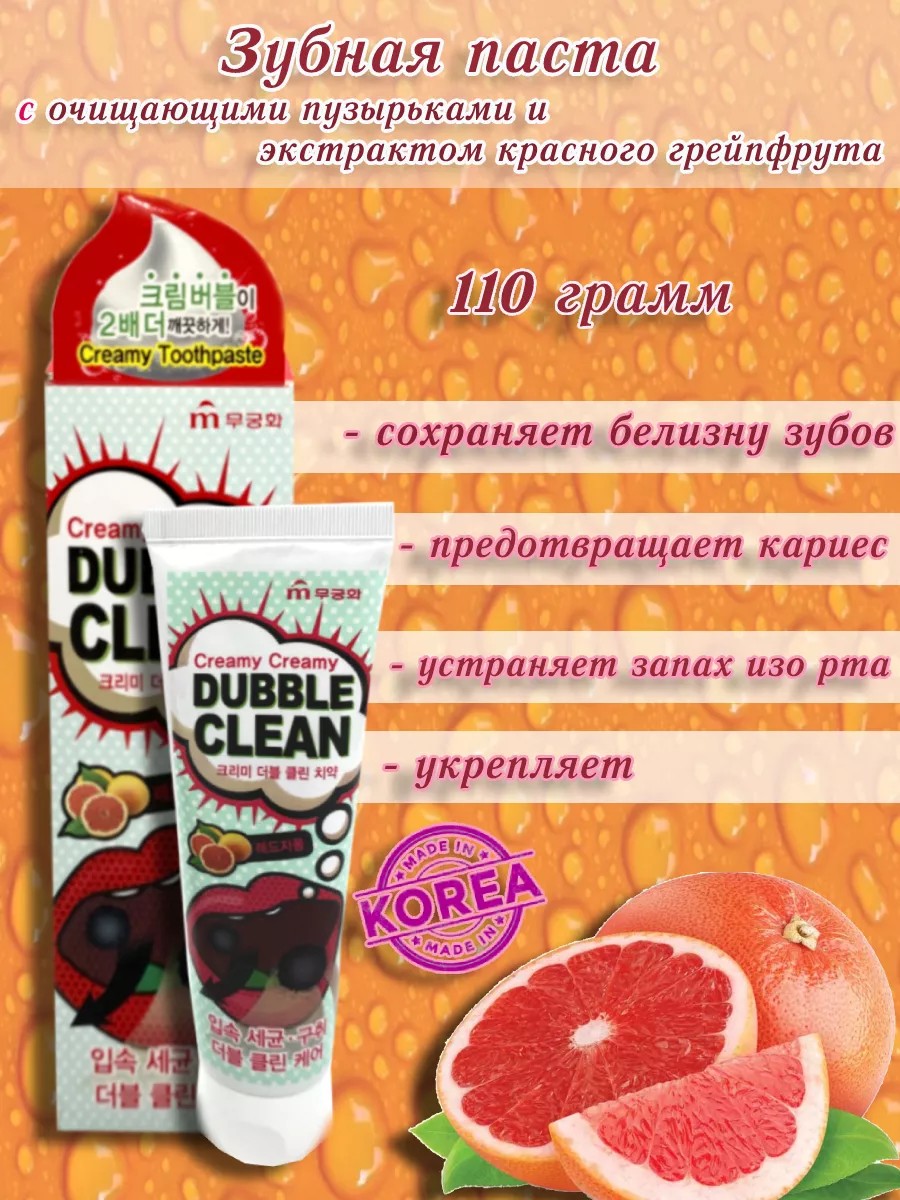 Зубная паста «Mukunghwa» с пузырьками аромат грейпфрута 110г