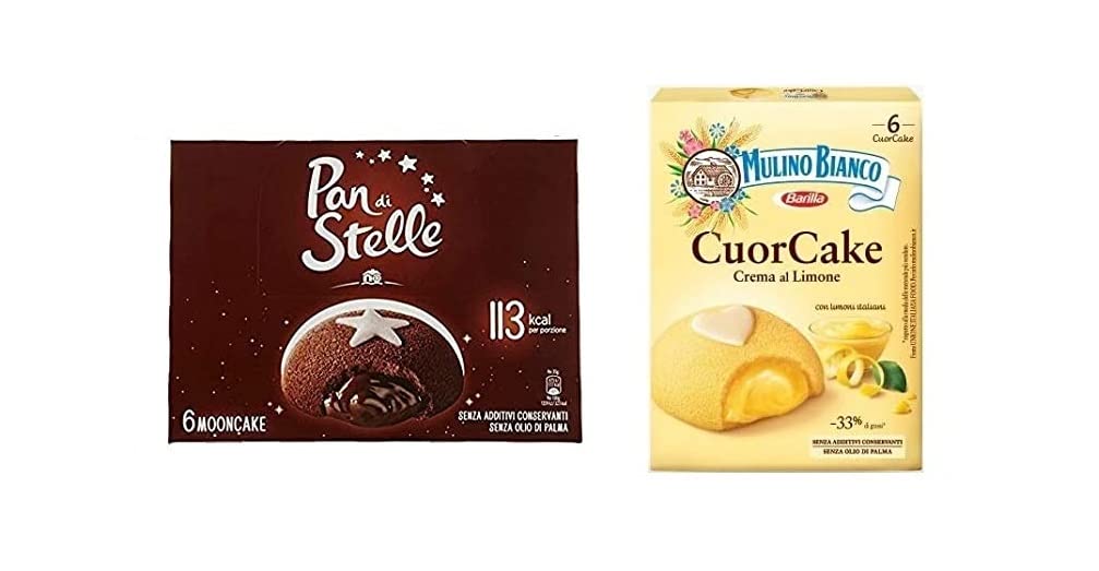 Ingredients: Lemon cream 49.7 (glucose syrup, sweetened skimmed milk concentrate, 8.3 lemon juice, cocoa butter, sugar, modified starch, sunflower oil, carrot extract, emulsifiers: mono- and diglycerides of fatty acids, flavorings), sugar, wheat flour, wheat starch, fresh eggs 5.3 , egg yolk, sunflower oil, emulsifiers: mono- and diglycerides of fatty acids, butter, carrot, flavorings, vegetable fat (coconut butter, [unclear]), protein powder, water, emulsifying agent (disodium diphosphate), sodium bicarbonate, ammonium carbonate), carrot extract, skimmed milk, salt, emulsifier: soy lecithin. May contain traces of: nuts, sesame. The highlighted ingredients may cause reactions in people with allergies or intolerances. Free from: palm oil, coloring additives, preservatives, hardened fats, GMO ingredients. Per 100g: Energy 1320 kJ – 314 kcal, Fat 12g, of which: saturates 5.8g, carbon dioxide 46.7g, of which sugars 29.7g. NRV 2.8, Protein 3.5g, Salt 0.300g. INGREDIENTS Lemon Cream 49.7 (glucose syrup, sweetened skimmed milk concentrate, 8.3 lemon juice, cocoa butter, sugar, modified starch, sunflower oil, carrot extract, emulsifiers: mono- and diglycerides of fatty acids, flavorings), sugar, wheat flour, wheat starch, fresh eggs. 5.3 , 5,3-elic acid, sunflower oil, emulsifiers: mono- and diglycerides of fatty acids, butter, carrot, flavourings, vegetable fat (coconut butter), protein powder, water, yeast (disodium diphosphate)Paquet de test Barilla Mulino Bianco Cuor Cake Snack rempli de crème au citron – Pan di Stelle Mooncake Snack rempli de crème au chocolat (12 x 35 g)DESCRIPTION DU PRODUIT DESCRIPTION DU PRODUIT Ingrédients : crème de citron 49,7 (sirop de glucose, concentré de lait écrémé sucré, 8,3 de jus de citron, beurre de cacao, sucre, amidon modifié, huile de tournesol, extrait de carotte, émulsifiants : mono et diglycérides d'acides gras alimentaires, arômes), sucre, farine de blé. l amidon de blé, Œufs frais 5,3 , jaune d'œuf, huile de tournesol, émulsifiants : mono et diglycérides d'acides gras alimentaires, beurre, carotte, arômes, graisse végétale (beurre de coco, beurre de ), poudre de protéines, eau, agent héritif (diphosphate de disodium) , bicarbonate de sodium, carbonate d'ammonium), extrait de carotte, lait écrémé, sel, émulsifiant : lécithine de soja. Il peut contenir des traces de : noix, sésame. Les ingrédients mis en valeur peuvent provoquer des réactions chez les personnes allergiques ou intolérantes. Sans : huile de palme, additifs colorants, additifs de conservation, graisses durcies, ingrédients OGM pour 100 g : énergie 1320 kJ – 314 kcal graisse 12 g dont : acides gras saturés 5,8 g, hydrodate de carbone 46,7 g, dont sucre 29,7 g. ERN 2,8 Protéine 3,5 g de sel 0,300 g. INGRÉDIENTS Crème au citron 49,7 (sirop de glucose, concentré de lait écrémé sucré, 8,3 de jus de citron, beurre de cacao, sucre, amidon modifié, huile de tournesol, extrait de carotte, émulsifiants : mono et diglycérides d'acides gras alimentaires, arômes), sucre, farine de blé, amidon de blé, œufs frais. 5,3 , 5,3élique, huile de tournesol, émulsifiants : mono et diglycérides d'acides gras alimentaires, beurre, carotte, arômes, graisse végétale (beurre de coco, ), poudre de protéines, eau, levure (diphosphate disodium)