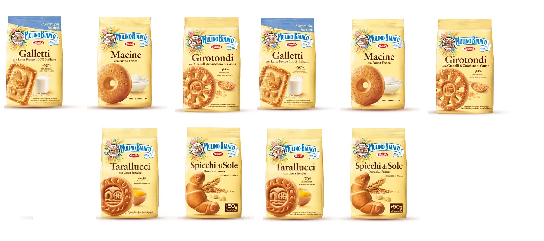 Mulino Bianco – Galletti Shortbread Biscuits – A flavorful breakfast treat – 350g for everyone: simple and light, perfect for dipping, deliciously filled, wholegrain and high in fiber, gluten-free and with no added sugar. Ideal for breakfast or as a snack, these biscuits are made with wheat flour, premium pasteurized fresh milk, and honey. The thin shortcrust pastry is made with fresh Italian milk. Mulino Bianco has always been committed to quality. We offer a wide range of delicious products to enjoy throughout the day: biscuits, sweets, snacks, breads, and more. Ingredients: May contain traces of nuts, mustard, sesame, soy, and eggs - Spray (ammonium bicarbonate, sodium bicarbonate) - Vanillin flavoring - Honey - Wheat flour - 68 - Vegetable oils (sunflower, corn, rapeseed, soy) - High-quality pasteurized fresh milk - 3 granulated sugar - 3 granulated sugar - Percentage of final product information: Sugar, salt, wheat starch, milk proteins. Safety warning: Always read the label before using this product. Contact your doctor if you have any questions. Check the allergens it contains. Check with SIMEPRE to see if this product is suitable for use and or consumption. INGREDIENTS Ingredients: May contain traces of nuts, mustard, sesame, soy, and eggs - Powder (ammonium bicarbonate, sodium bicarbonate) - Vanillin flavoring - Honey - Wheat flour - 68 - Vegetable oils (sunflower, corn, rapeseed, soy) - High-quality pasteurized fresh milk - 3 granulated sugar - 3 granulated sugar - Percentage of final product information: sugar, salt, wheat starch, milk proteins MANUFACTURER'S DETAILS BARILLA G. E R. F.LLI S.P.A., VIA MANTOVA 166, 43122, PARMA, IT See moreMulino Bianco Kit de test de biscuits 10 x 350 g Girotondi Macine Galletti Spicchi di sole Beurre 350 g (10er Pack)DESCRIPTION DU PRODUIT DESCRIPTION DU PRODUIT Description Mulino Bianco – Biscuits sablés Galletti – Petit déjeuner riche en goût – 350 g pour tous les goûts : simple et léger, bon pour tremper, délicieusement farci, complet et avec des fibres, sans gluten ni sucre ajouté. Biscuit idéal pour le petit-déjeuner ou comme collation pour la farine de blé, le lait frais pasteurisé de qualité supérieure et le miel Pâte brisée fine avec du lait italien frais. Mulino Bianco a toujours recherché la qualité. De nombreux produits délicieux qui vous accompagnent à tout moment de la journée : biscuits, friandises, collations, pains et collations. Ingrédients : peut contenir des traces de fruits à coque, moutarde, sésame, soja et œufs - Pulvérisateur (hydrogénocarbonate d'ammonium, bicarbonate de sodium) - Arôme vanilline - Miel - Farine de blé - 68 - Huiles végétales (tournesol, maïs, colza, soja) - Lait frais pasteurisé de qualité supérieure - 3 de sucre cristallisé - 3 de sucre cristallisé - Pourcentage Informations relatives à la Produit final Sucre sel amidon de blé Protéines de lait Avertissement de sécurité Lisez toujours les étiquettes avant d'utiliser ce produit. Contactez votre médecin si vous avez des questions. Renseignez-vous sur les allergènes qu'il contient. Vérifiez auprès de SIMEPRE si ce produit est adapté à l'utilisation et ou à la consommation. INGRÉDIENTS Ingrédients : peut contenir des traces de fruits à coque, moutarde, sésame, soja et œufs - Pulvérisateur (hydrogénocarbonate d'ammonium, bicarbonate de sodium) - Arôme vanilline - Miel - Farine de blé - 68 - Huiles végétales (tournesol, maïs, colza, soja) - Lait frais pasteurisé de qualité supérieure - 3 de sucre cristallisé - 3 de sucre cristallisé - Pourcentage Informations relatives à la Produit final sucre sel amidon de blé protéines de lait COORDONNÉES DU FABRICANT BARILLA G. E R. F.LLI S.P.A., VIA MANTOVA 166, 43122, PARMA, IT Voir plus