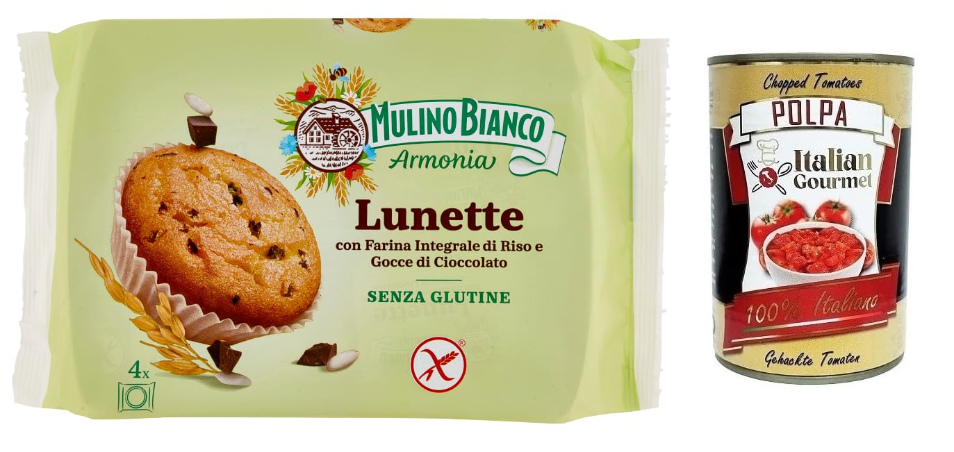 Polpa di Pomodoro 400g Free Gluten-Free Cake Specially designed for people with gluten intolerance, made with wholegrain rice flour and chocolate chips. This gluten-free treat contains all the authentic taste of wholegrain rice flour and chocolate in a portion ideal for breakfast or as a snack. Dedicated to those who need to choose gluten-free foods. All good gluten-free! Ingredients. WITH: Fresh eggs, sugar, sunflower oil, wholegrain rice flour 14.7 (rice flour, rice bran), water, chocolate 5.6 (sugar, cocoa mass, cocoa butter, flavoring, emulsifier: soy lecithin), corn starch, stabilizer: glycerin, apricot yogurt [yogurt (milk), sugar, apricot puree, flavorings], whole wheat corn flour, flavorings (milk), soluble fiber: oligofructose, emulsifiers: mono- and diglycerides of fatty acids, raising agent (disodium diphosphate, sodium hydrogen phosphate carbonate, ammonium carbonate), thickener: guar fiber, salt. Store in a cool, dry place. Prepared using natural, gluten-free ingredients: lactose, gluten, palm oil, coloring additives, preservatives, hydrogenated fats, GMO ingredients. Per 100g: Energy 1736 kJ 415 kcal Fat 21g, of which saturates 3.5g Carbohydrate 50g, of which sugars 27g Fiber 2.6g Egg whites 5.2g Salt 1.0g. INGREDIENTS Fresh eggs, sugar, sunflower oil, wholegrain rice flour 14.7 (rice flour, rice bran), water, chocolate 5.6 (sugar, cocoa mass, cocoa butter, flavoring, emulsifier: soy lecithin), corn starch, stabilizer: glycerin, apricot yogurt [yogurt (milk), sugar, apricot puree, mint flavoring], wholegrain wheat corn flour, flavourings (milk), soluble fibre: oligofructose, emulsifiers: mono- and diglycerides of food fatty acids, raising agent (disodium diphosphate, sodium hydrogen phosphate carbonate, ammonium carbonate), thickener: guar fibre, salt.Mulino Bianco Lunette Tortina Senza Glutine Gâteau sans gluten avec farine de riz complet et gouttes de chocolat, paquet de 140 g, chaque paquet contient 4 gâteaux Polpa di Pomodoro Italian GourmetDESCRIPTION DU PRODUIT DESCRIPTION DU PRODUIT Polpa di Pomodoro 400 g gratuit Gâteau sans gluten spécialement conçu pour les personnes souffrant d'intolérance au gluten avec la farine de riz complet et les gouttes de chocolat Les lunettes sans gluten contiennent toute l'authenticité de la farine de riz complet et le goût du chocolat dans une portion idéale pour le petit-déjeuner ou comme collation. Dédié à ceux qui doivent opter pour des aliments sans gluten. Tout bon sans gluten! Ingrédients. AVEC : Oeufs frais, sucre, huile de tournesol, farine de riz complet 14,7 (farine de riz, son de riz), eau, chocolat 5,6 (sucre, pâte de cacao, beurre de cacao, arôme, émulsifiant: lécithine de soja), amidon de maïs, stabilisant: glycérine, yaourt aux abricots [yaourt (lait), sucre, abricot purée d'oies e, arômes], farine de maïs de blé entier, arômes (lait), fibres solubles: oligofructose, émulsifiants: mono- et diglycérides d'acides gras alimentaires, leveur de levure (diphosphate disodique, phosphate d'hydrogénothérapie de sodium). carbonate, carbonate d'ammonium), épaississant : fibre de guar, sel. Conserver dans un endroit frais et sec. Préparé à partir de matières premières naturelles sans gluten : lactose, gluten, huile de palme, additifs colorants, additifs conservateurs, graisses hydrogénées, ingrédients OGM pour 100 g d'énergie 1736 kJ 415 kcal graisses 21 g dont acides gras saturés 3,5 g glucides 50 g dont suppléments sucre 27 g Fibres 2,6 g de blancs d'œufs 5,2 g de sel 1,0 g INGRÉDIENTS Oeufs frais, sucre, huile de tournesol, farine de riz complet 14,7 (farine de riz, son de riz), eau, chocolat 5,6 (sucre, pâte de cacao, beurre de cacao, arôme, émulsifiant: lécithine de soja), amidon de maïs, stabilisant: glycérine, yaourt aux abricots [yaourt (lait), sucre, abricot purée, arôme men], farine de maïs de blé entier, arômes (lait), fibres solubles: oligofructose, émulsifiants: mono- et diglycérides d'acides gras alimentaires, leveur (diphosphate disodique, phosphate d'hydrogénothérapie de sodium). carbonate, carbonate d'ammonium), épaississant : fibre de guar, sel.