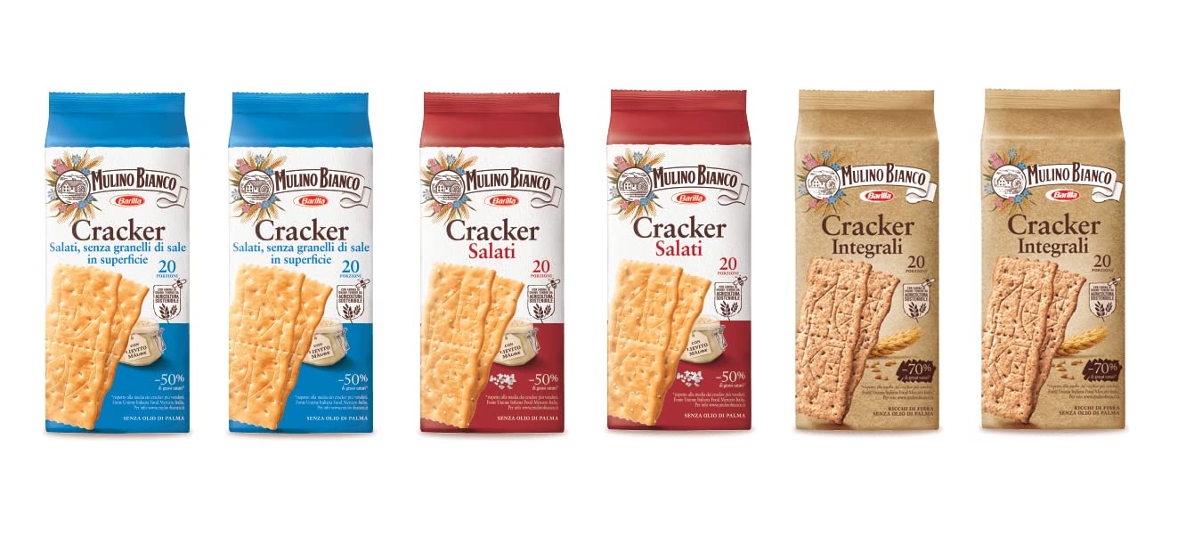 Ingredients: 95g wheat flour (per 100g) - Sunflower oil, 2.1 salt - Barley and corn malt extract - Acidity regulator: sodium bicarbonate, barley malt flour - 0.5 yeast (wheat), yeast. May contain traces of: nuts, milk, soy, and eggs. The highlighted ingredients may cause reactions in people with allergies or intolerances. Free from: flavorings, palm oil, coloring additives, hardened fats, GMO ingredients. Per 100g: Energy 1845 kJ – 439 kcal - Fat 13g of which saturates 1.6g, Carbohydrate 68g of which sugars 2.5g, Niacin 4.8g, Protein 10g, Salt 2.25g. INGREDIENTS 95g wheat flour (per 100g), sunflower oil, 2.1 salt, barley and corn extract, acidity regulator: sodium bicarbonate, barley malt flour, 0.5 wheat yeast, yeast. May contain traces of: nuts, milk, soy, and eggs.Mulino Bianco Lot de 6 paquets de test Crackers Salati avec moins de sel 500 gDESCRIPTION DU PRODUIT DESCRIPTION DU PRODUIT Ingrédients : 95 g de farine de blé (produit sur 100 g) - Huile de tournesol 2,1 de sel - Extrait d'orge et de malt de maïs - Régulateur d'acidité : bicarbonate de sodium, farine de malt d'orge - 0,5 de levure de maternité (blé), levure. Il peut contenir des traces de : noix, lait, soja et œufs. Les ingrédients mis en valeur peuvent provoquer des réactions chez les personnes allergiques ou intolérantes. Sans : arômes, huile de palme, additifs colorants, matières grasses durcies, ingrédients OGM pour 100 g : énergie 1845 kJ – 439 kcal - Matières grasses 13 g dont acides gras saturés 1,6 g , hydrate de carbone 68 g dont sucre 2,5 g. N 4,8 g Protéine 10 g Sel 2,250 g. INGRÉDIENTS 95 g de farine de blé (produit sur 100 g) huile de tournesol, 2,1 de sel, extrait d'orge et de maïs, régulateur d'acidité : bicarbonate de sodium, farine de malt d'orge, 0,5 levure de maternité (blé), levure. Il peut contenir des traces de : noix, lait, soja et œufs.
