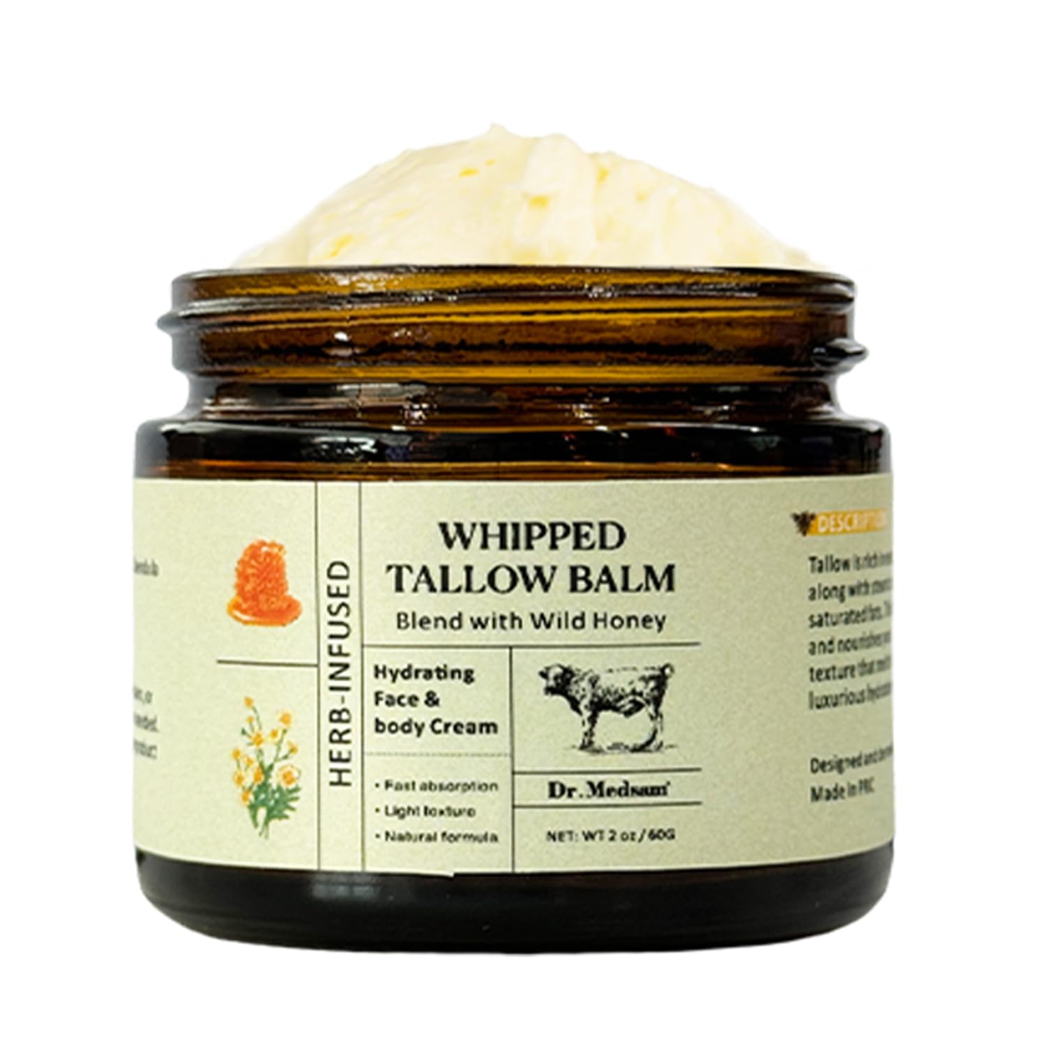 MULPG Beef Tallow for Skin Whipped Beef Tallow and Honey Balm Moisturizer for Face & Body Deeply Moisturizing Fast Absorption Natural Skin Care (60 g)