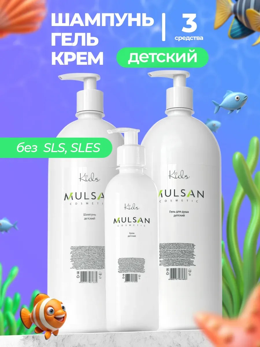 Mulsan Набор 3 в 1 детский шампунь гель и крем для тела